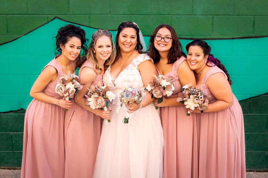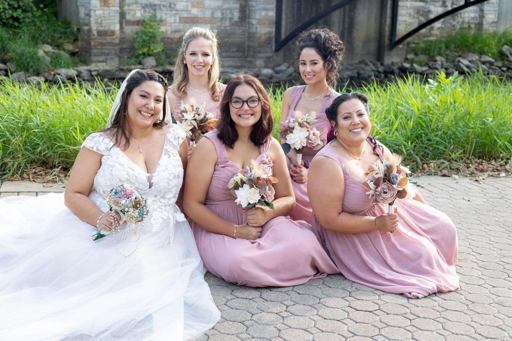 In shopping for her dress, Sheila tried on five gowns, but picked the very first one. “I love that my gown wasn’t just white,” she says. “There was a layer of blush tulle too. It wasn’t too over the top with the detailing, and I felt comfortable in it. Also, there were pockets! Who doesn’t love pockets in a dress?”