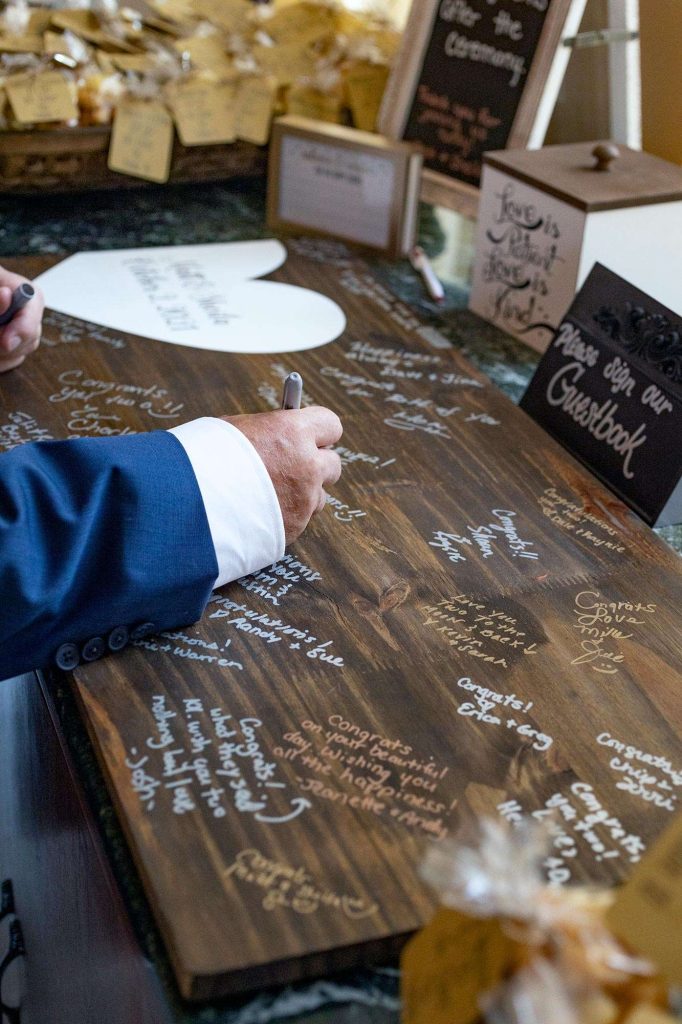In the bridal party, Sheila had all of her sisters and her oldest daughter—one sister flew in from South Carolina, another from California. Matt had his brother and closest friends as groomsmen. The two’s youngest daughter was their flower girl. Sheila’s dad walked her down the aisle, and she could barely hold tears back the moment she saw Matt. “We were so grateful to have all our loved ones play such important parts in our day.”