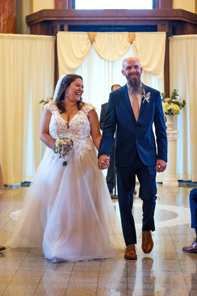 Sheila and Matt love Waukesha, so celebrating their wedding there was an easy choice. “We had passed the Rotunda many times during family outings at Waukesha’s Friday Night Live. We wanted to find something local so that guests weren’t traveling too far out of the way.”
