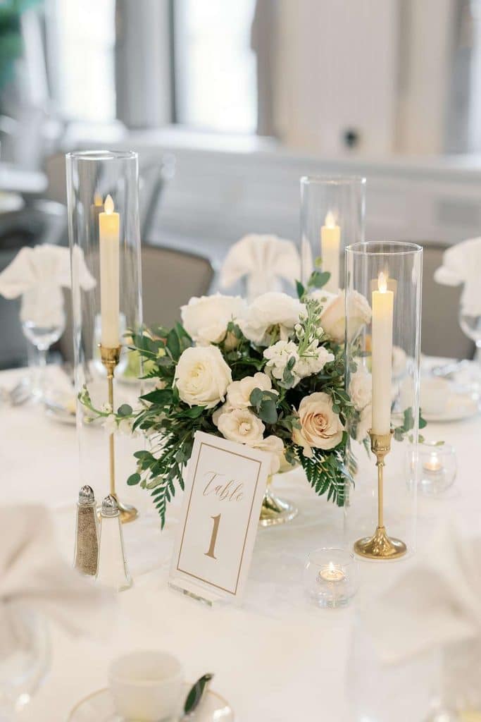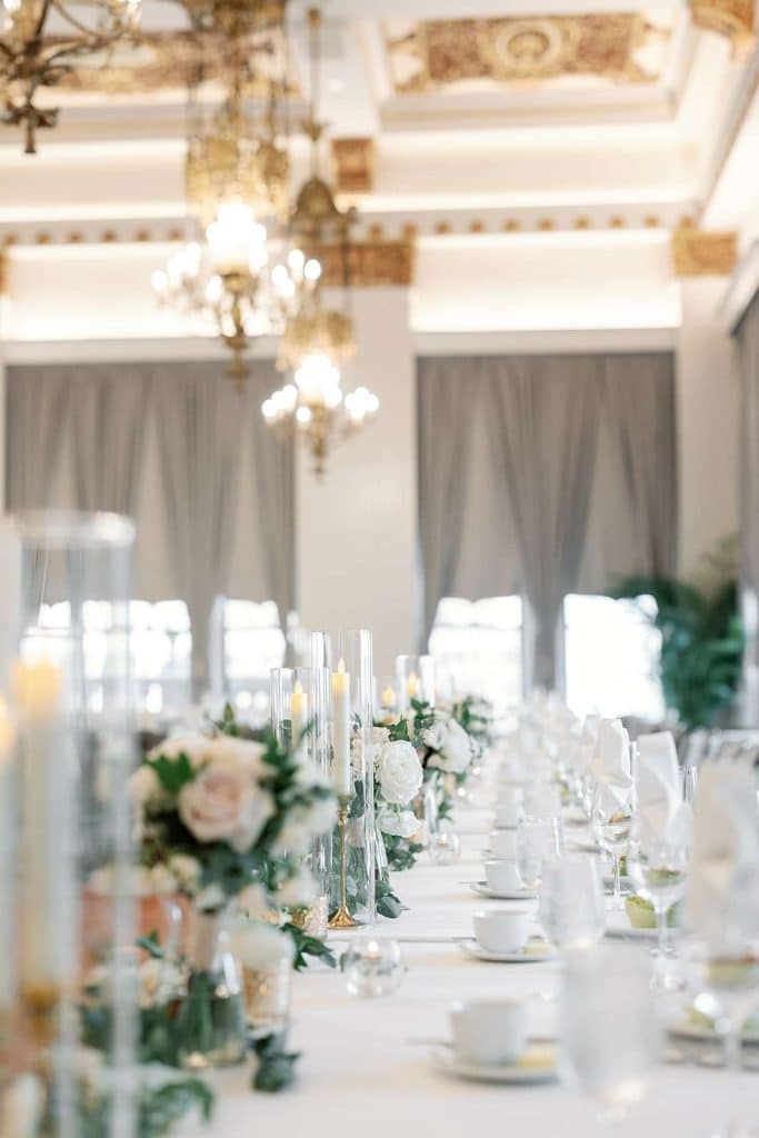 “My favorite design element was the florals. Since our venues were already gorgeous, I wanted to keep the decorations very simple and timeless. We had very classy florals and just candles for the decor. It was really important for us to keep it simple so that when we look back at our wedding in a couple of years, everything will still look beautiful and not dated.“