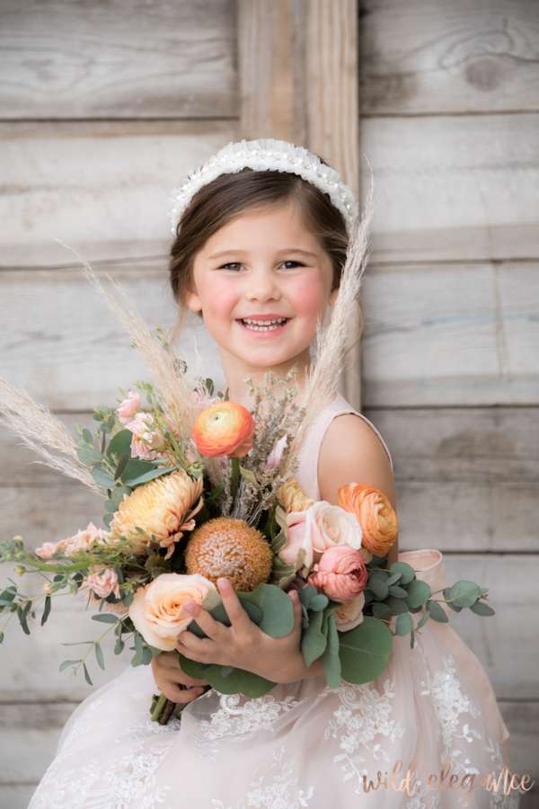 Our flower girl dresses and head pieces hail from Goo Goo Gaa Gaa Children’s Boutique in Brookfield! With an additional option of a floral crown from Bank of Flowers!