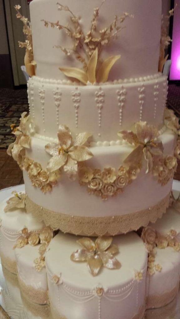 I was asked to create ‘The Queen of England’s’ wedding cake for a very special wedding here in Milwaukee. The event was only for about 140 guests but the actual cake would have served about 1200 guests. So I went to work creating a mini version of the England masterpiece. In the end it still would serve about 260 guests. The bride was to say ‘over the moon’ with excitement that it could be done without losing much of the majestic decor from the original and that it was being created just for them. I advised the bride that if we were to go forward with this version that she would need to reach out to a few accepting causes that could benefit from all the additional servings that would be left over as she did not want them herself. It was one of the most heart warming events to be part of knowing that in the end nothing was going to waste and the bride’s vision of a European masterpiece was created by Sweet Perfections.