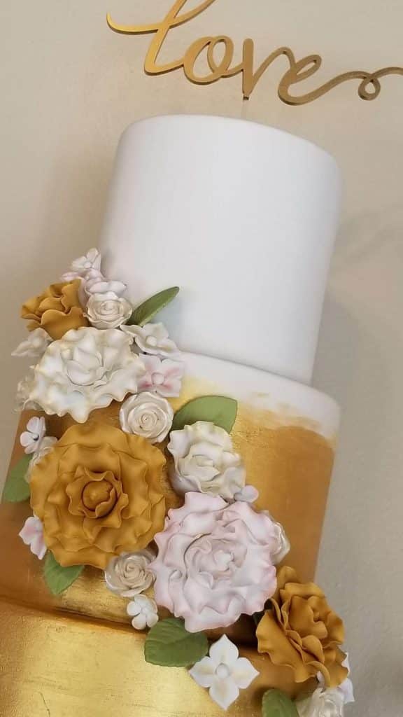 The sweets tables are still a huge trend allowing couples to provide a wide variety of products to their guests when a slice of wedding cake to all is not their vision. Metallics are also hot. For 2021 I am seeing more requests for traditional wedding cakes again, yahoo!