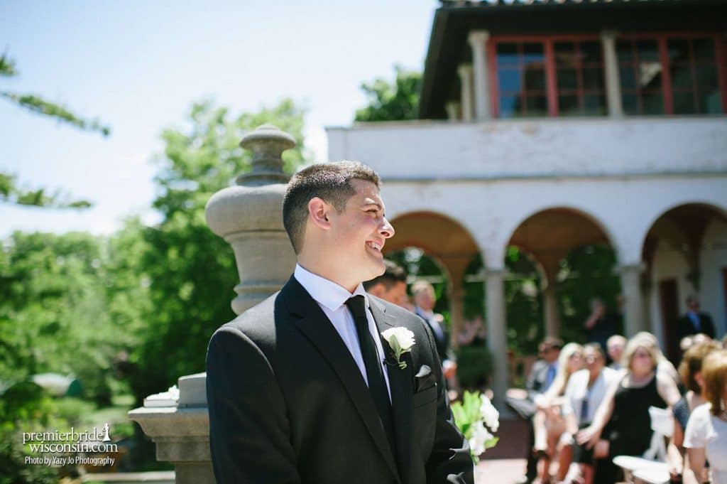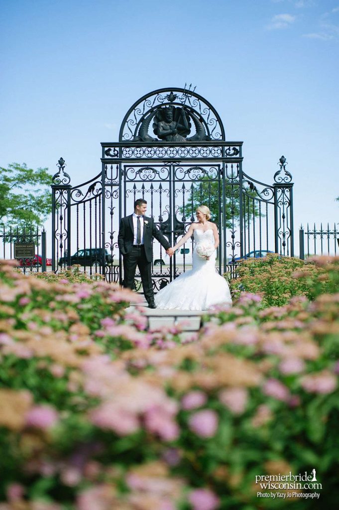 “The Villa Terrace is the most romantic venue in Milwaukee,” Taylor says. “Truly a hidden gem. The rooms, garden, terrace, and view were breathtaking. We booked this space a week after we got engaged because we knew it was the one!” Nick and Taylor didn’t want a particularly traditional wedding ceremony. “We asked Nick’s aunts to officiate our wedding. We also spent a lot of time looking for readings that expressed our relationship. It was fun to make it our own!”