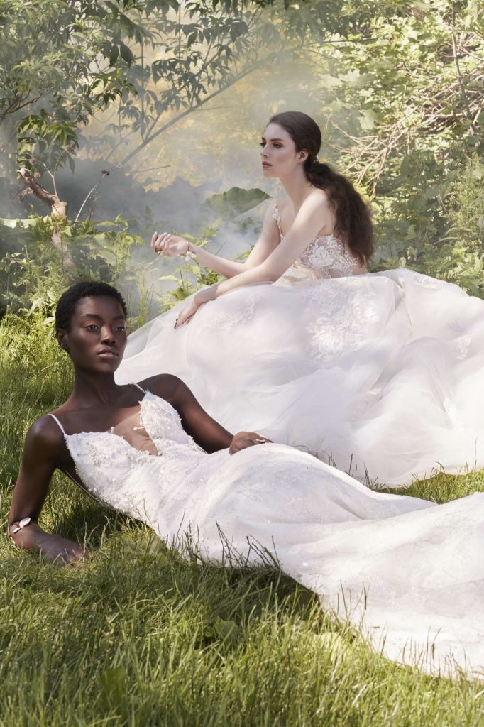 What’s the inspiration behind Ines Di Santo’s spring collection? It’s ENCHANTMENT! Defined as the state of being under a spell, Di Santo says “This is the feeling that I wanted to convey when you look at my latest collection. I wanted to take your eye on a journey of fantasy and beauty. I have draped silhouettes to give them new lightness and drama. I have worked with fabrications that are ethereal that float like mist in the air. All of my hand embellishments seem to blossom organically on each design. I hope you find these gowns as enchanting as I do.”