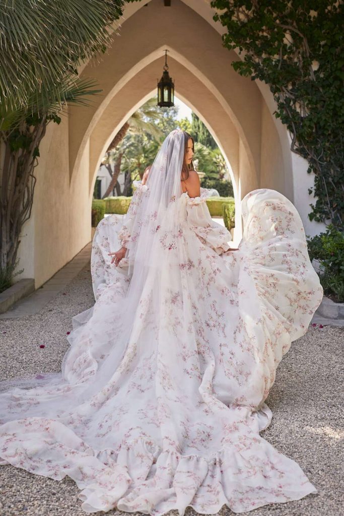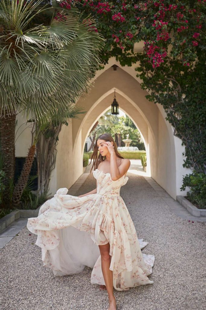 Monique Lhuillier’s Spring 2021 collection evokes a Spanish flair with California ease. This season is all about traditional laces, delicate floral details, luminous embroideries, and regal proportions. Flowing silhouettes with voluminous sleeves, deep v-necks and flamenco-style skirts dance into the night with poetic elegance. Sensual capes, Watteau trains, and detachable jackets give versatility to each look. And as always, femininity and romance reign supreme!