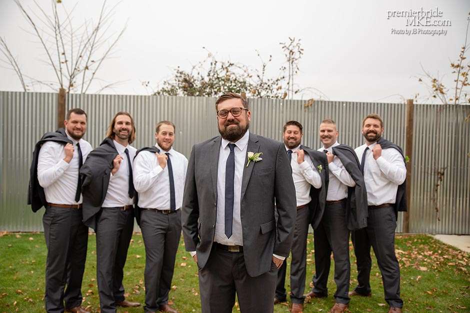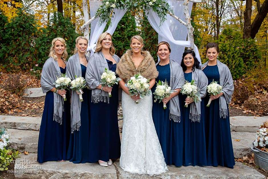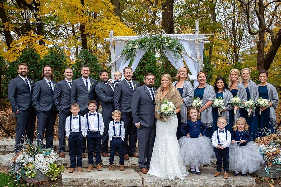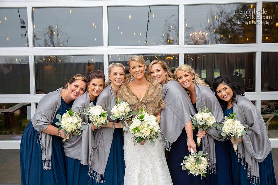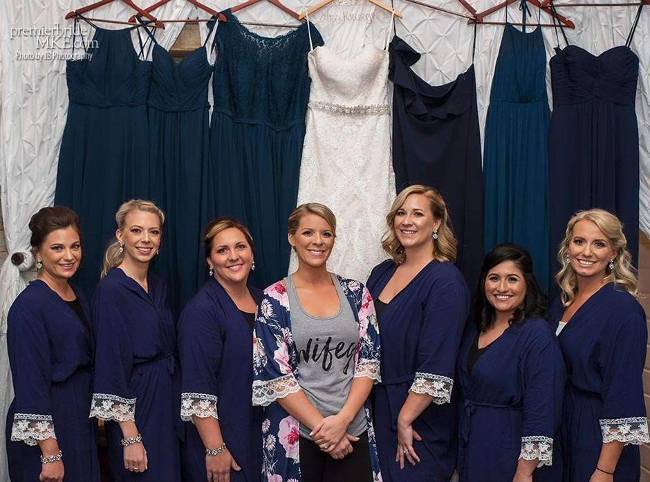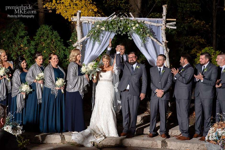 The two planned an October wedding at Terrace 167. The vibe was a mix of industrial and the outdoors with a color palette of navy and grey with gold accents. The ceremony was held outside at sunset. “We had all eight of our nieces and nephews stand up in the wedding. Our favorite part was being so surrounded by loved ones. We knew it would be pretty cold out, so we had a warming station with blankets and hand warmers to help guests stay toasty.”