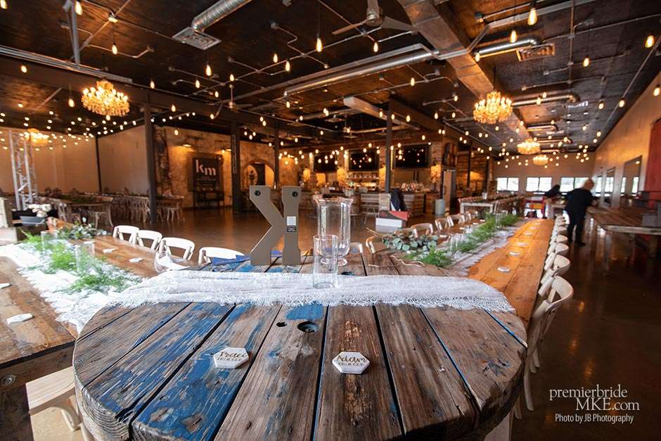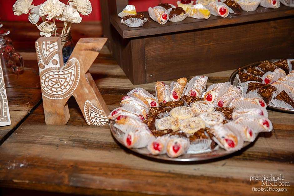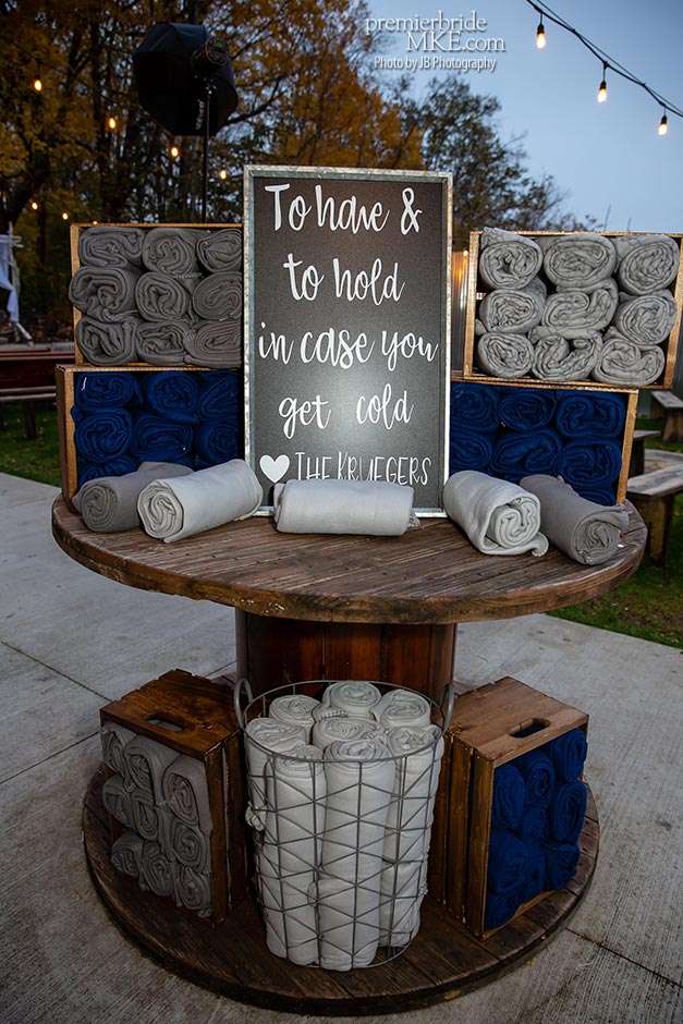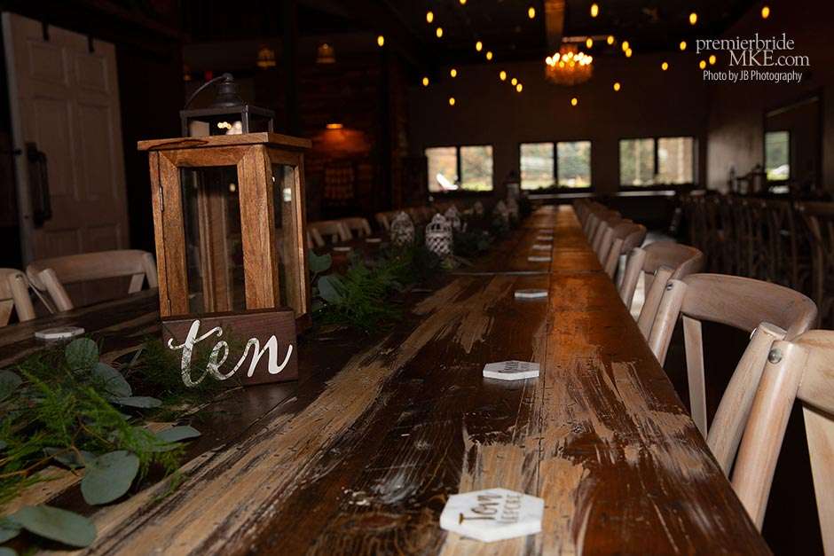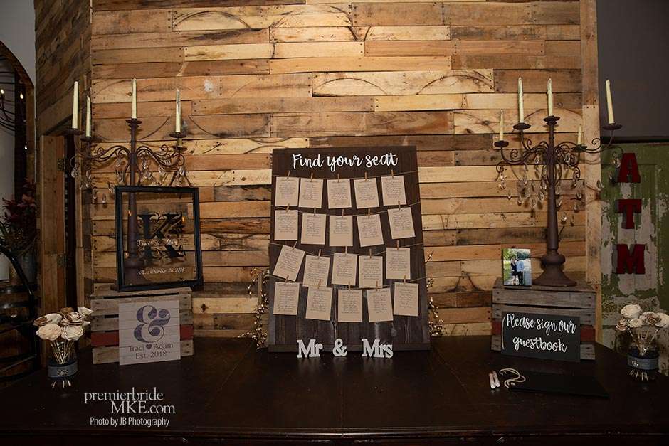 “We loved looking around and seeing all of our signs and details that we made come together.” In addition to all their handcrafted pieces, Traci and Adam worked with Well Dressed Tables to outfit the space with extra-special necessities, such as gold cutlery. “The design of the space and the table decor was everything we dreamed and more!”