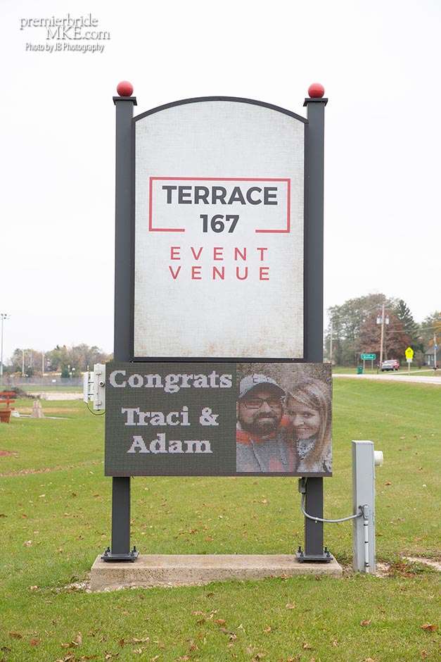 Traci says the Terrace 167 reception space was the perfect blend of her and Adam’s style. “The chandeliers were elegant and the barn wood tables and industrial touches were beautiful. Terry and Stephanie at Terrace 167 were so great at communicating throughout the planning process. They made sure everything went according to plan; we didn’t have to worry about anything.”
