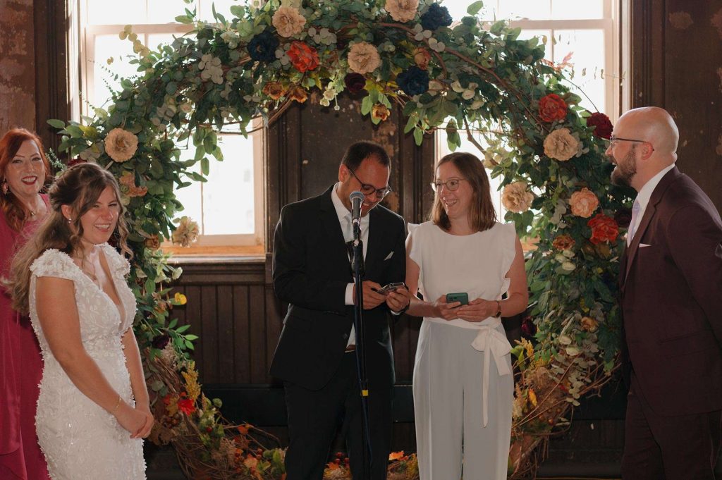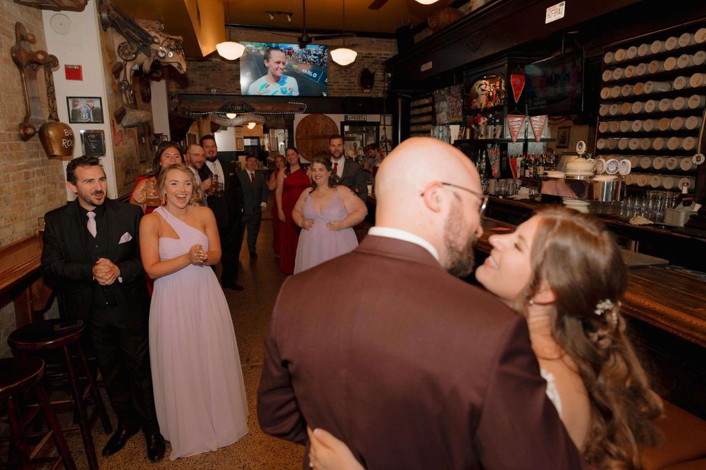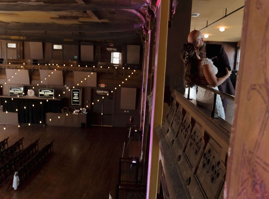 “Turner Hall is absolutely gorgeous and has so much character. It was the perfect venue for the big party that we wanted to throw. We loved that it had enough space for our ceremony, that the cocktail hour could be held on the balcony, and that a big turnover wasn’t needed between dinner and dancing. We wanted people to be able to run out and get the party started! We also loved that we’d be able to take pictures on the roof.”