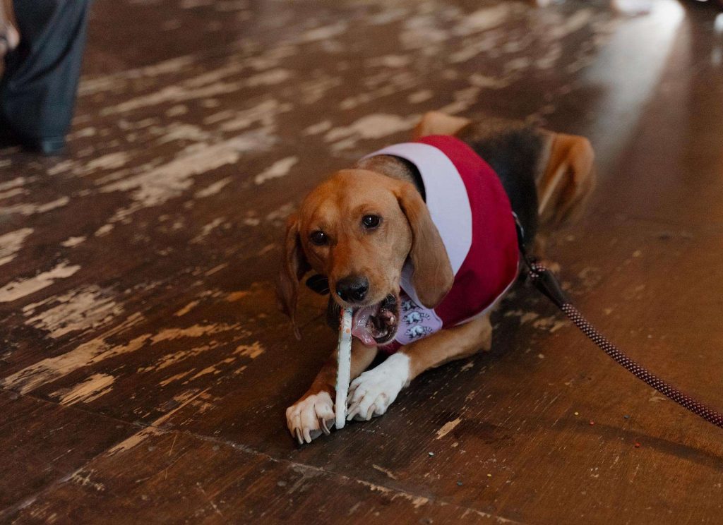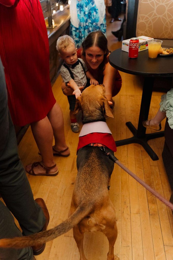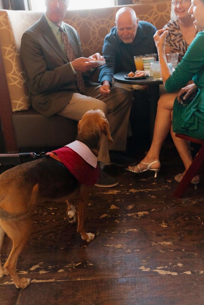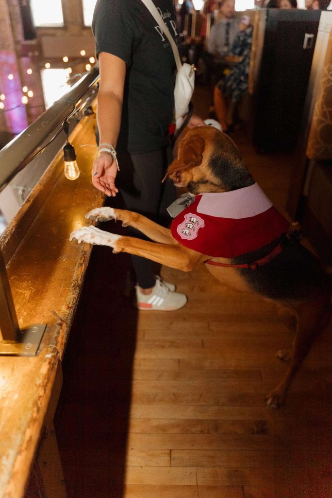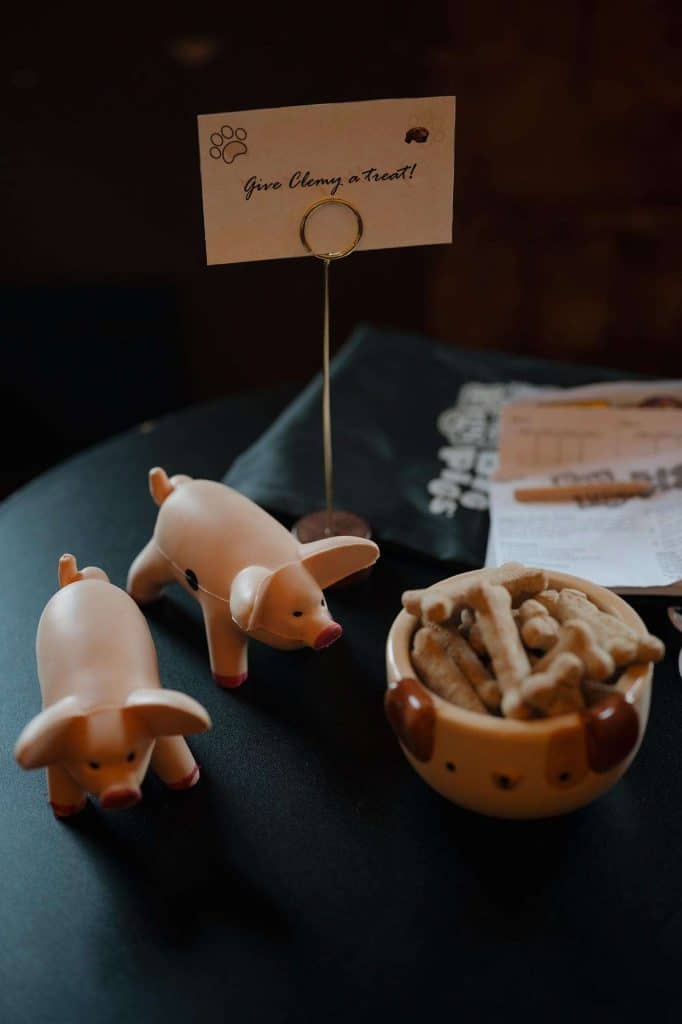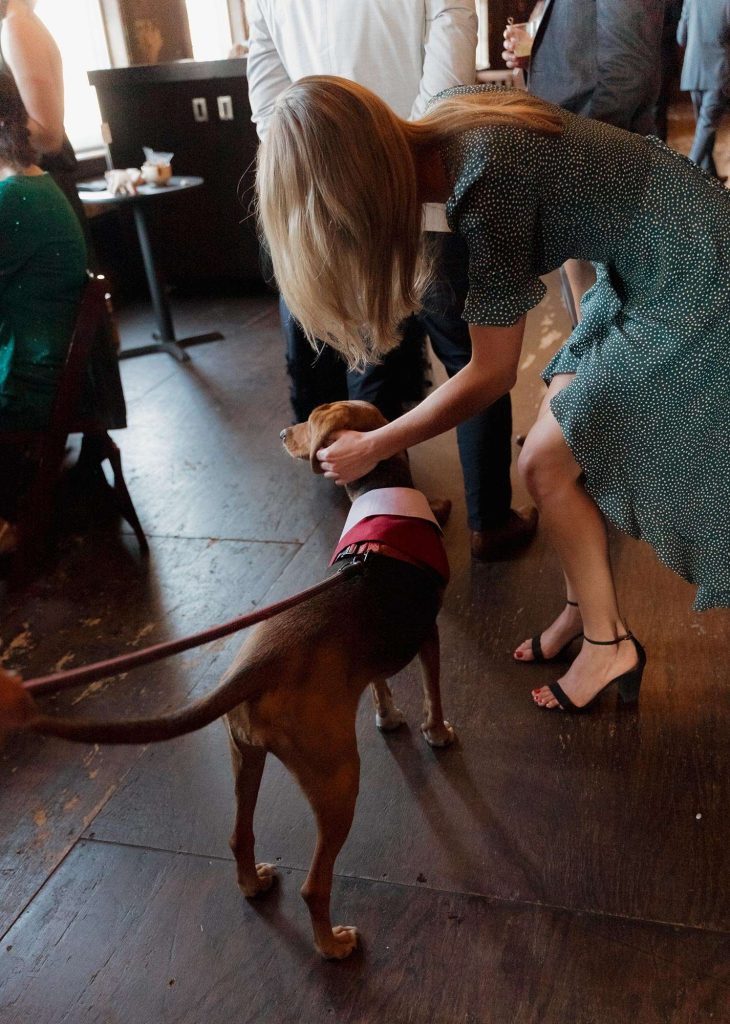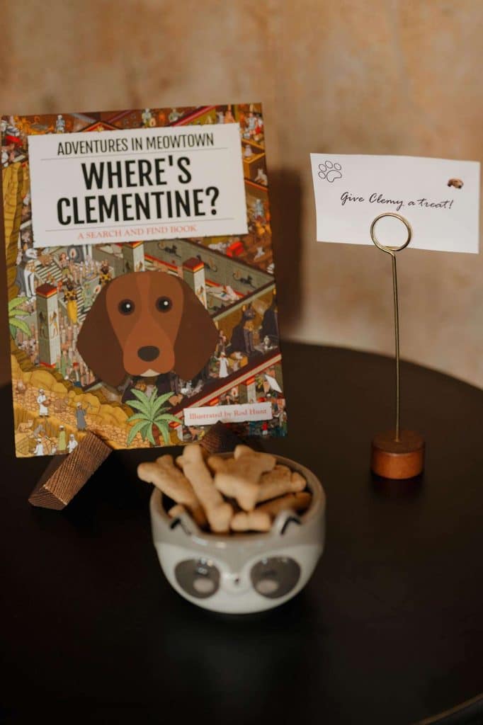 We brought our dog, Clementine, to our wedding! Piccola Pups was the vendor who made it possible that our little girl was able to join us on one of the most important days of our lives. We put out treats for her so guests could feed her during cocktail hour. We also brought a “Where’s Clementine” book (instead of Where’s Waldo) to entertain guests during cocktail hour. It meant so much to us that Clementine could celebrate our big day with us!”