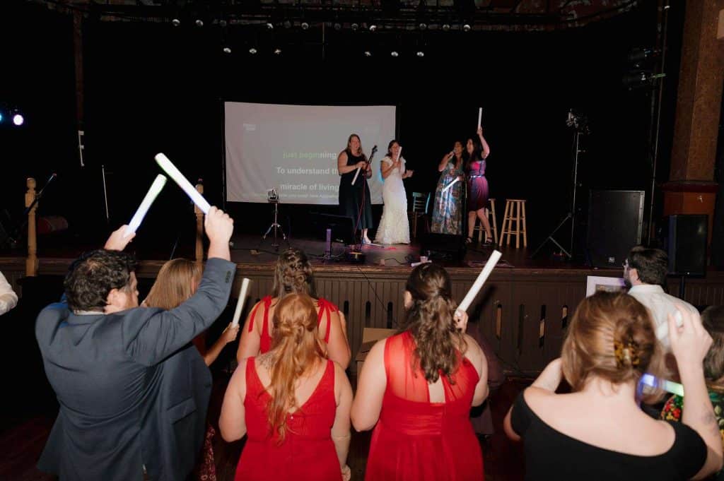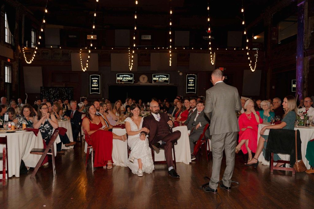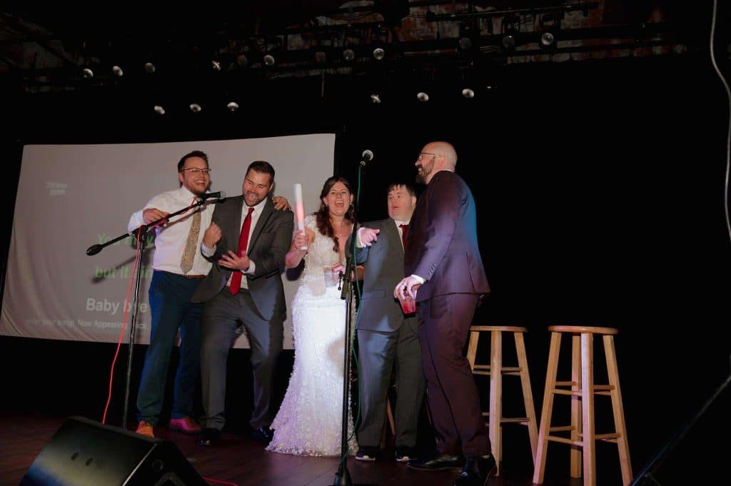 “We loved everything about our reception! We had karaoke breaks throughout the night! Since Turner has a big, beautiful stage, we wanted to put it to good use. We had no idea if it would work or not, but it ended up being a huge hit! Tons of people signed up and it added an extra touch of fun to our big party.