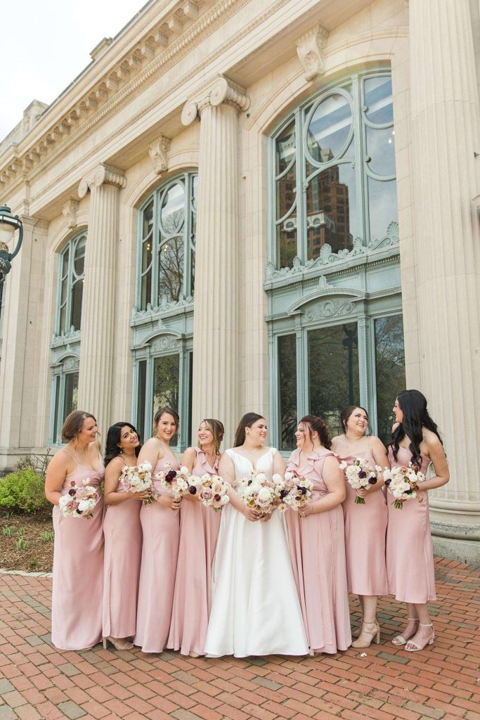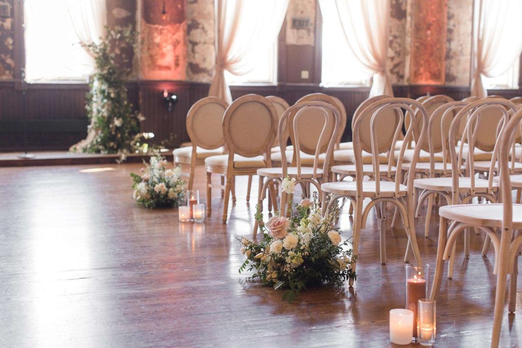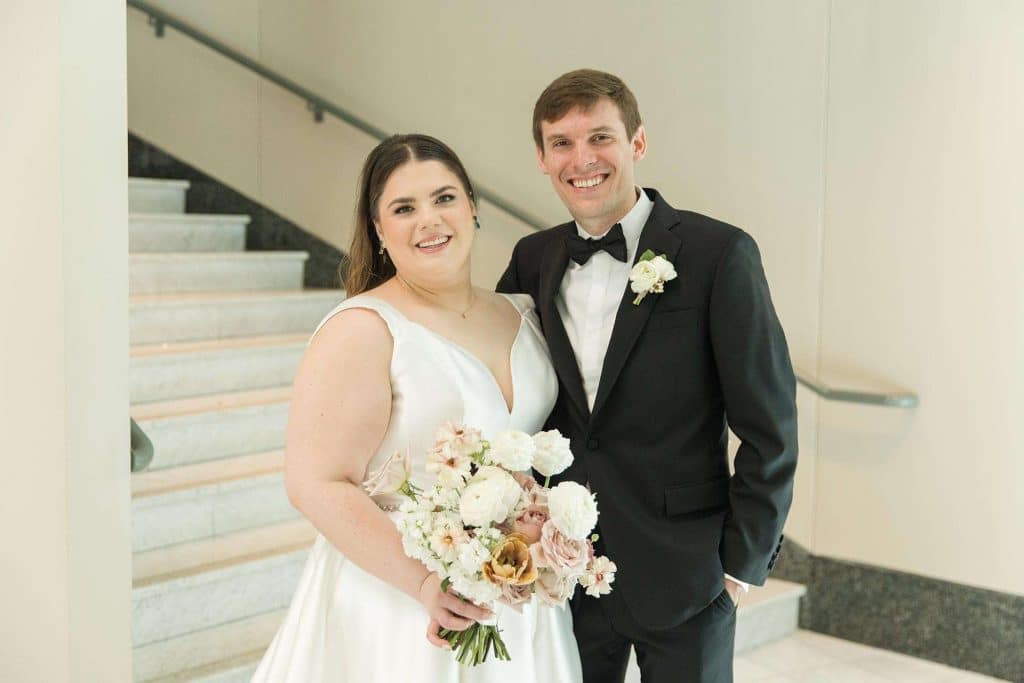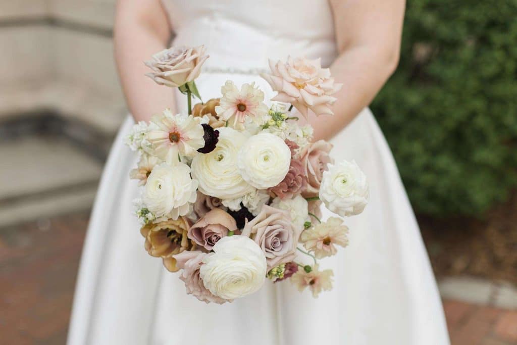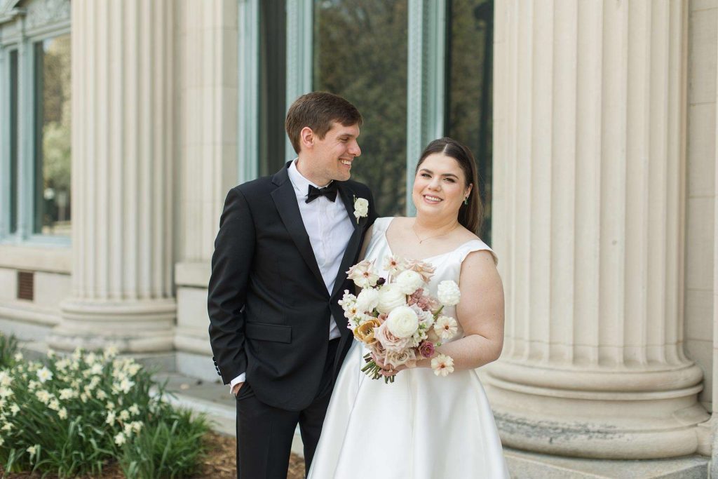 Ena and Scott met as many Milwaukeeans do: at a bar. They got engaged during the height of the pandemic, in October of 2020. “It happened in the kitchen of my apartment,” Ena says. “Scott proposed with a scavenger hunt.” The two planned a May 2022 wedding with a timeless, classic feel and a color palette of neutral, blush, and rosy hues.