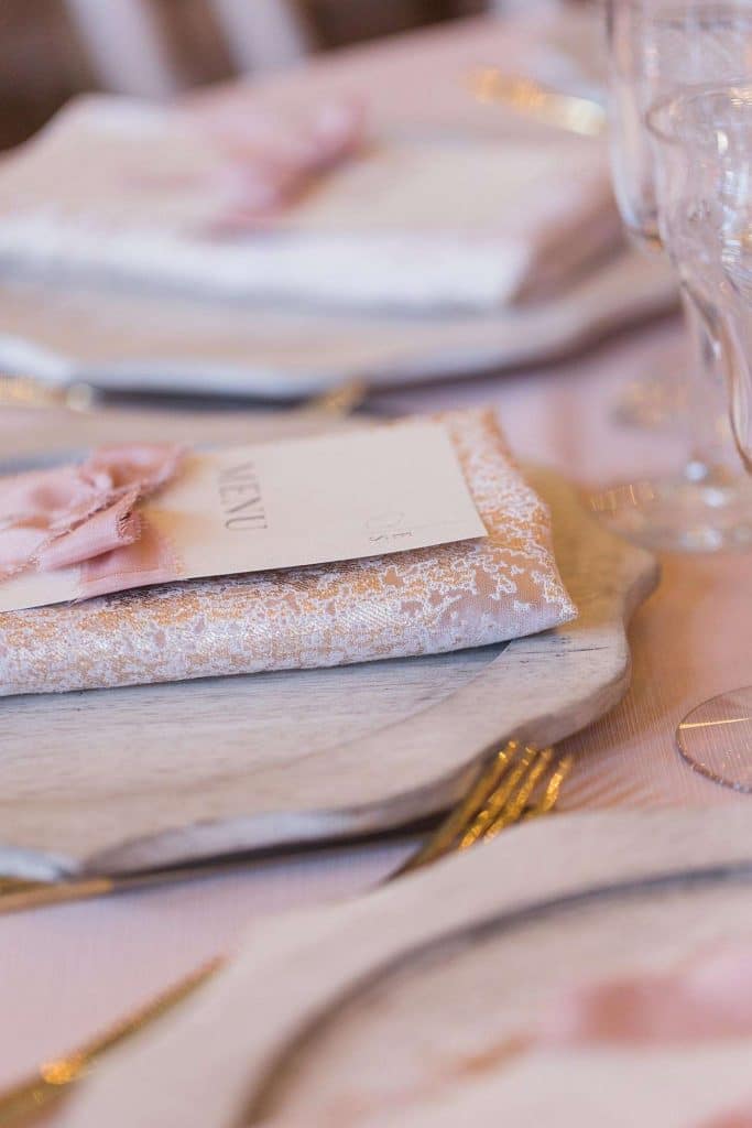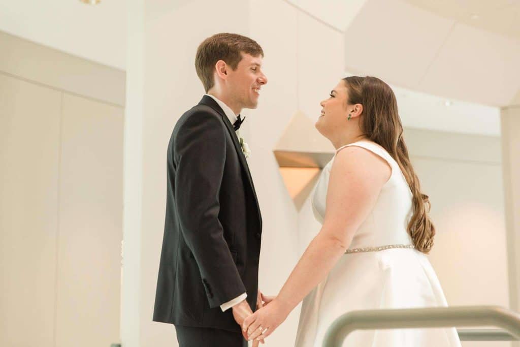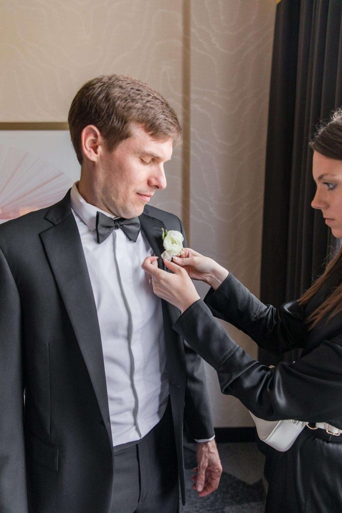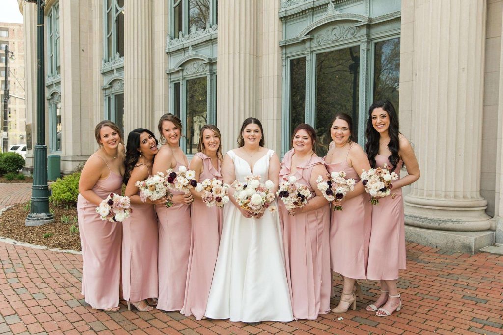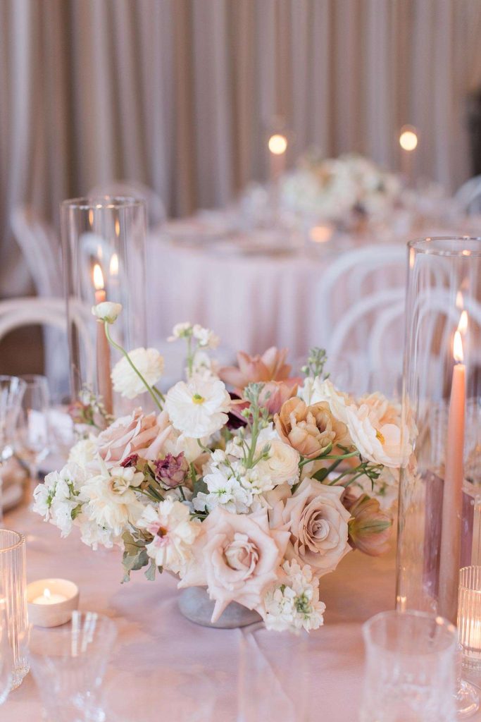 Ena and Scott met as many Milwaukeeans do: at a bar. They got engaged during the height of the pandemic, in October of 2020. “It happened in the kitchen of my apartment,” Ena says. “Scott proposed with a scavenger hunt.” The two planned a May 2022 wedding with a timeless, classic feel and a color palette of neutral, blush, and rosy hues.