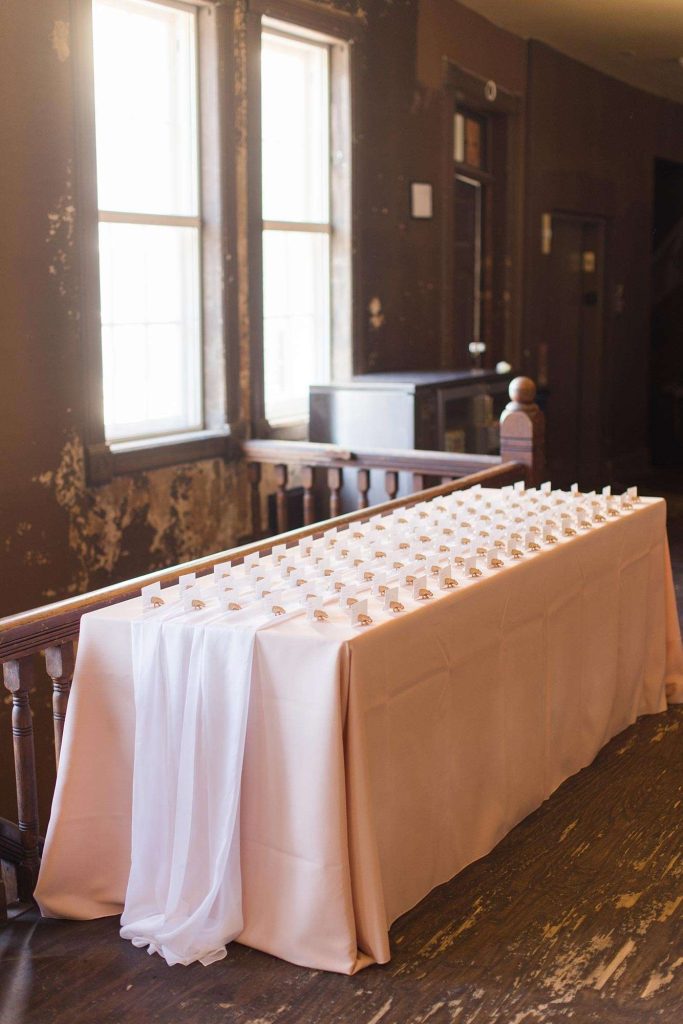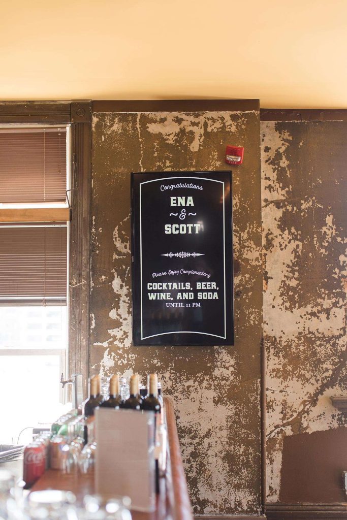 Ena found her wedding gown at Strike Bridal Bar after trying on four or five. They landed on Turner Hall Ballroom for both their wedding ceremony and reception venue. “We love the old Milwaukee feel of the space!” Invitations came courtesy of PaperWhites.