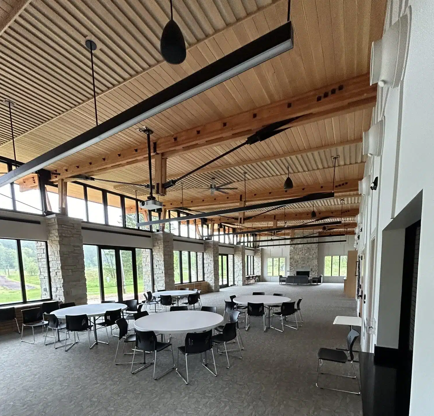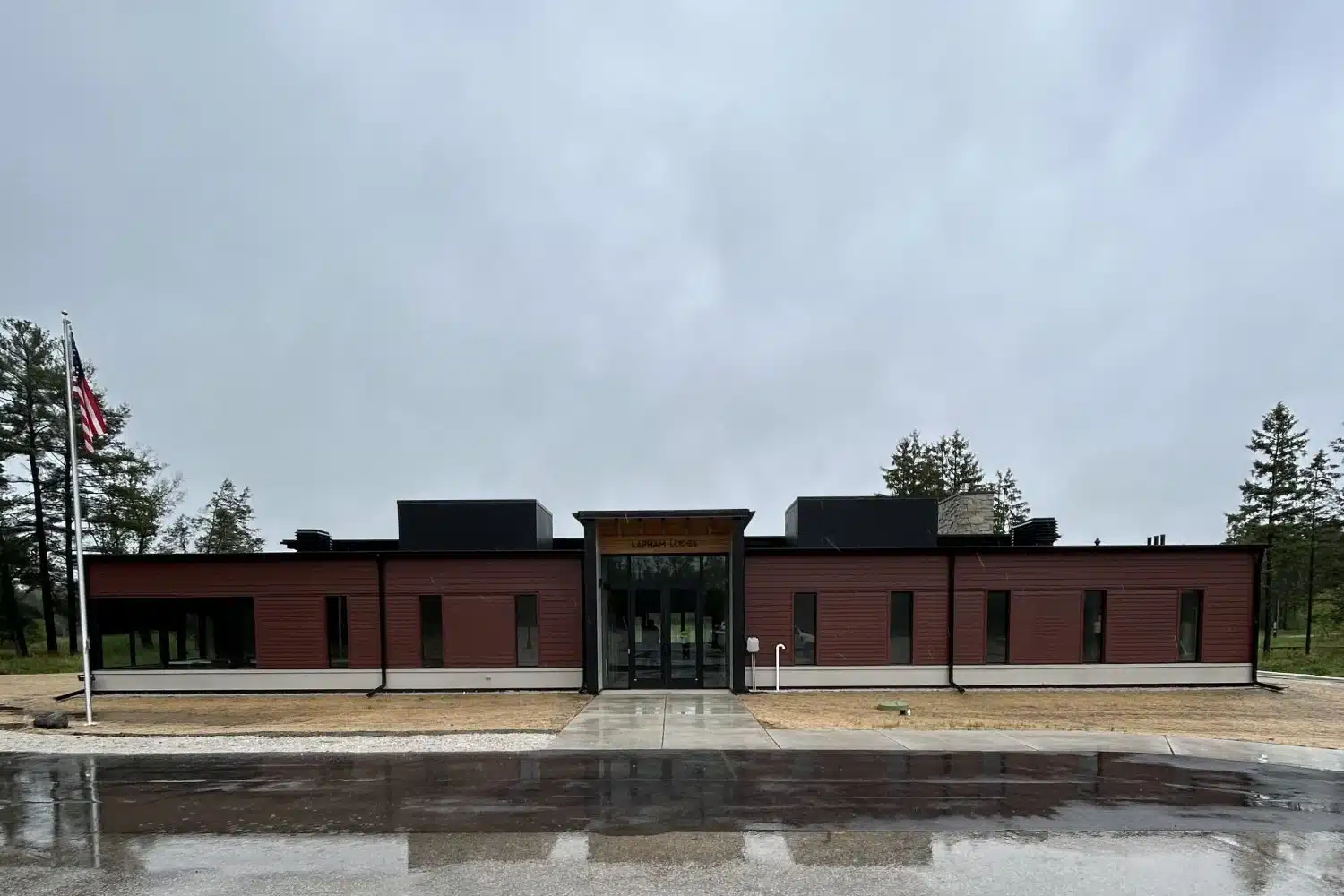 The Lapham Lodge is an award-winning building designed and built by the Friends of Lapham Peak and donated to the Wisconsin State Park System in 2025. The Lodge is located in the 1,100-acre Lapham Peak Unit of the Kettle Moraine State Forest, overlooking the highest peak in Waukesha County. It is reservable for events and gatherings from April 1 through October 31. The lodge has a main room with a capacity of 160 and a multi-purpose room with a capacity of 32. The main lodge has 10 tables and over 80 chairs, bathrooms, dedicated changing rooms with public lockers, a gas fireplace, indoor/outdoor A/V capabilities and drinking fountains. The multipurpose room features 6 tables, 24 chairs, a kitchenette and an A/V meeting space. Reservations can be made through the Wisconsin State Park reservation system.