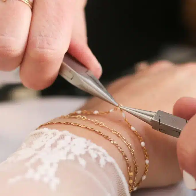 Their custom welded jewelry experience also makes the perfect addition to wedding celebrations, including bridal showers, bachelorette parties, and even wedding receptions. Looking for a meaningful way to celebrate your closest people? DaCaLi Delicate Link Collective can also join you the morning of your wedding, creating personalized permanent jewelry pieces for your bridal party as a memorable gift and experience to share together before you walk down the aisle.