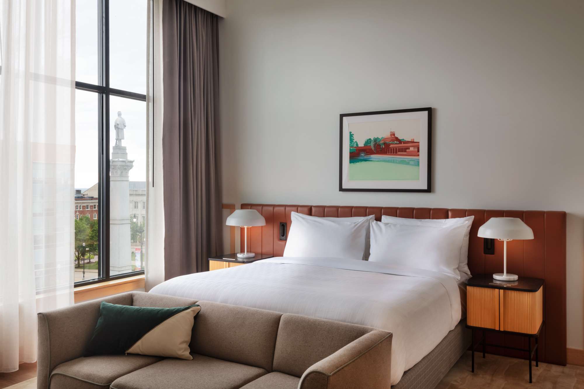 Your guests will delight in our nature-infused accommodations, featuring soothing colors and ethically sourced linens that reflect the beauty of our local landscapes. Our commitment to sustainability is evident throughout our Gold LEED Certified building, ensuring an eco-friendly experience for your special day.