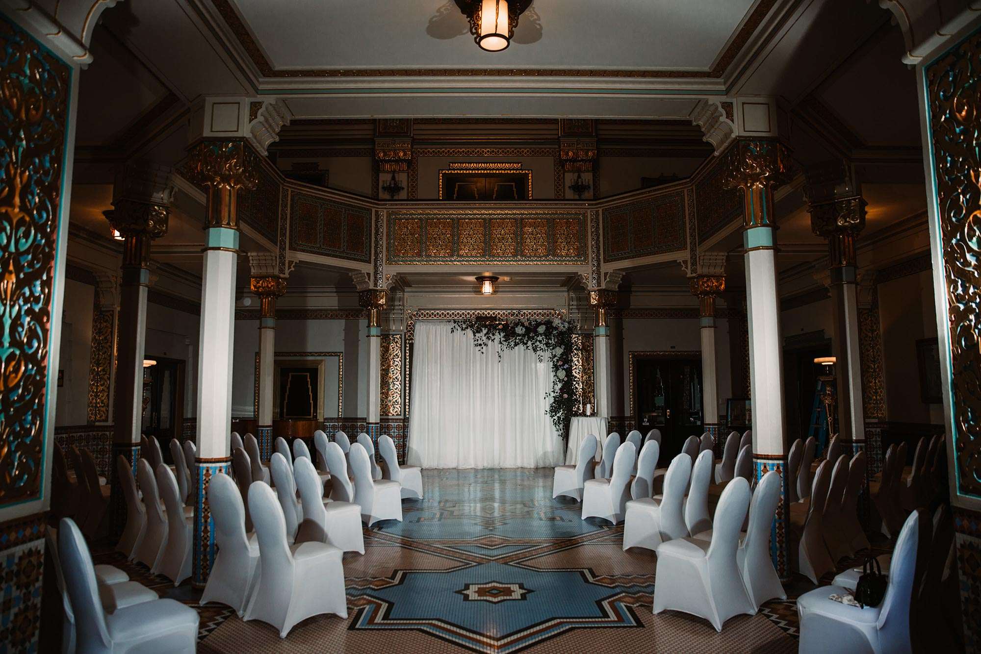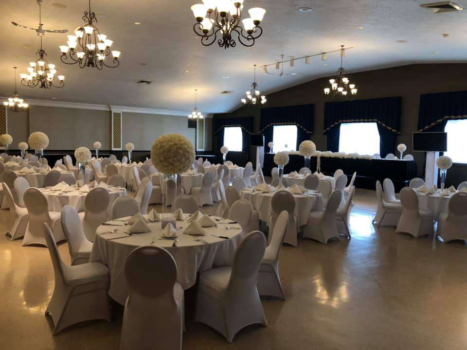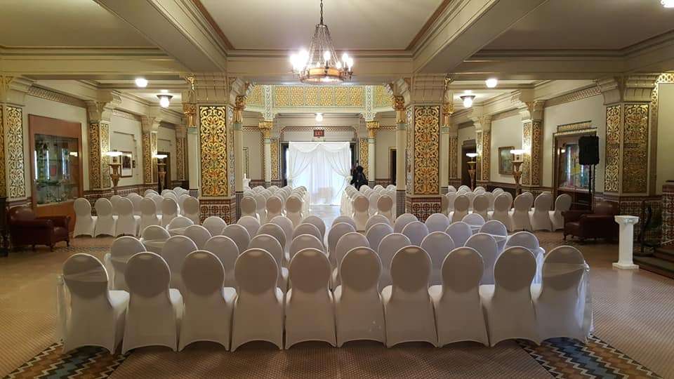 Our Humphrey Ballroom can accommodate up to 400 people for your reception and includes a stage w/Foyer accommodating up to 600 people. Our Melham Parlor can be used for smaller weddings for up to 85 people and our upper level will accommodate anywhere from 20 to 200 guests. We also have a few unique rooms for weddings and special events.