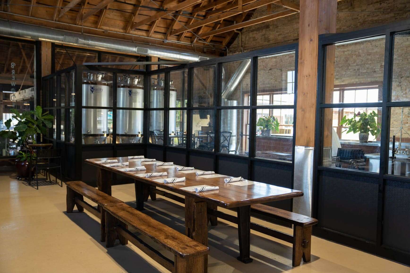 âś” On-Site Taproom & Kitchen: A cozy atmosphere with food made from locally sourced ingredients.