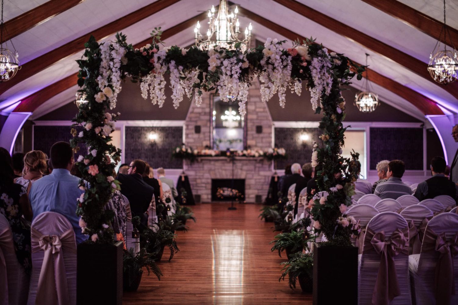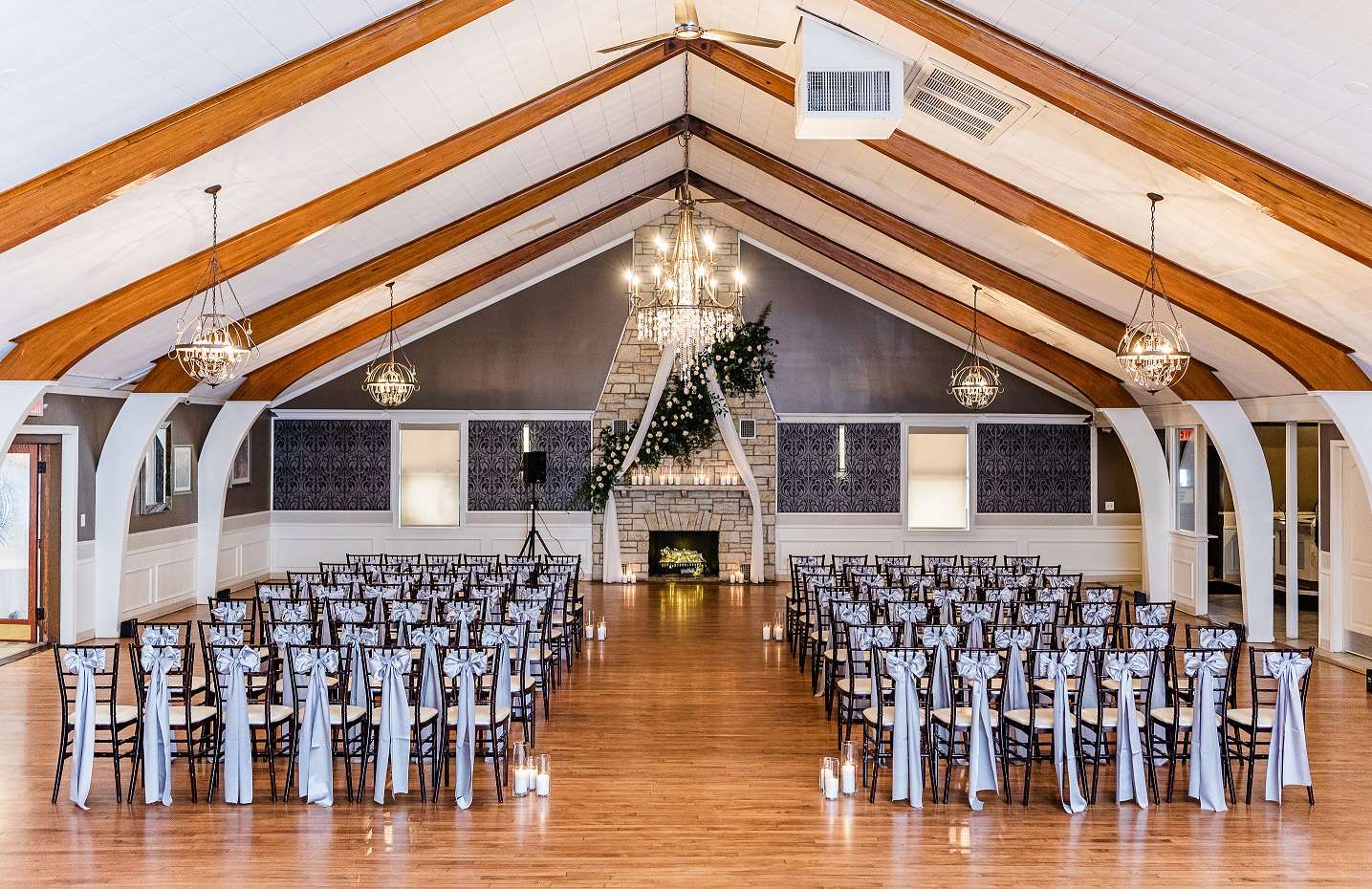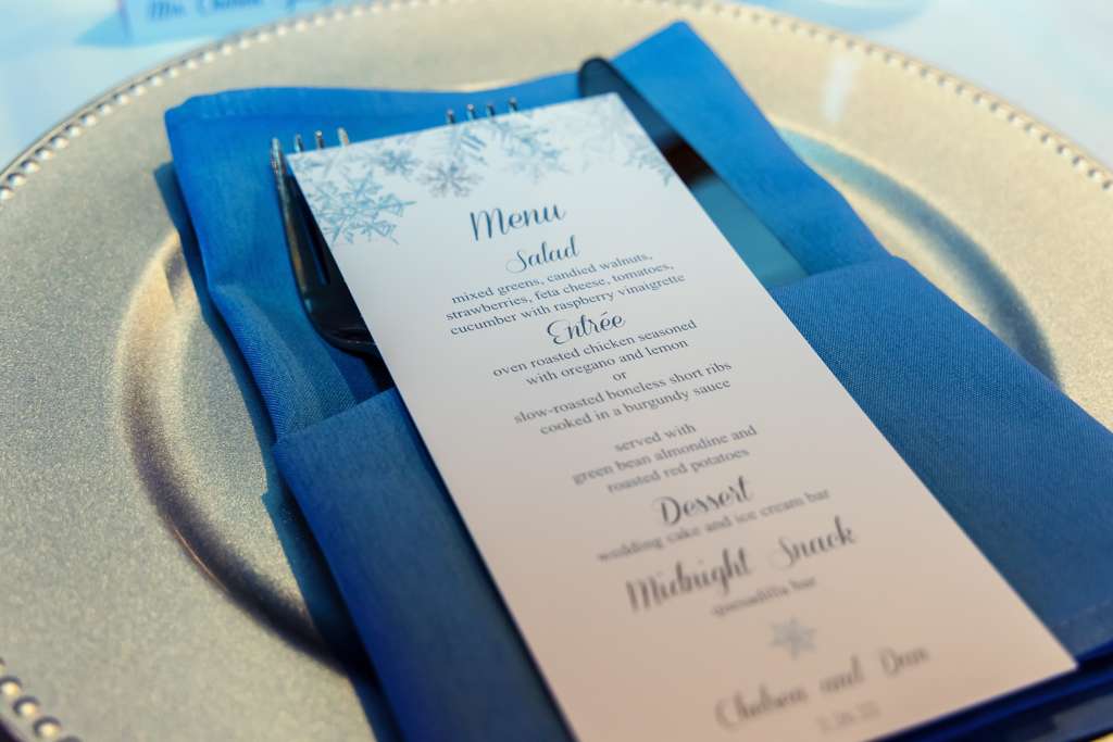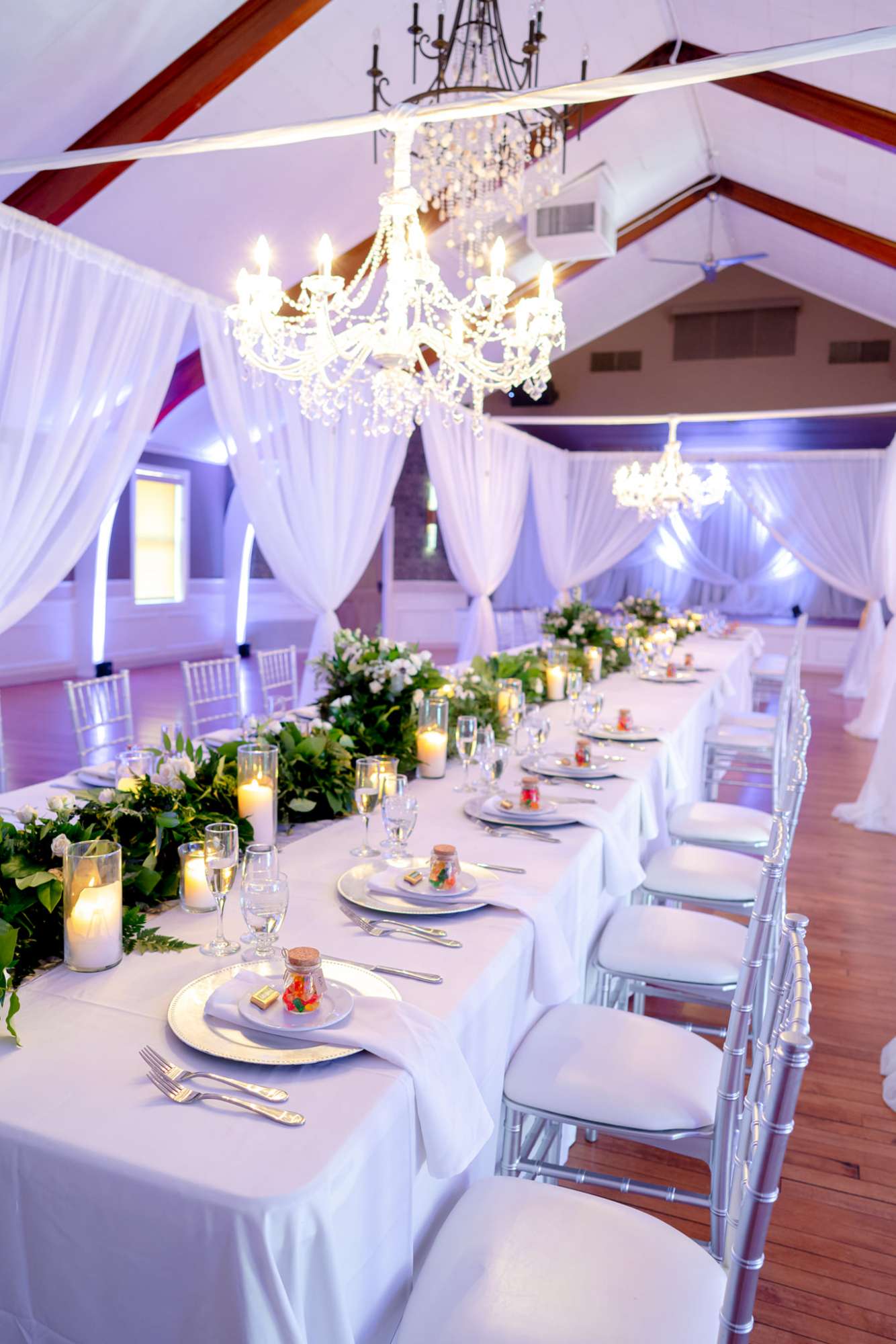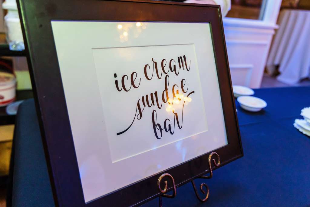 New Mahogany Chivari chairs are included with every event along with a complimentary Ice Cream Bar. Our All Inclusive Wedding packages include up lighting, chargers on the tables, runners on the table and so much more. We want every wedding to have all of the bells and whistles!