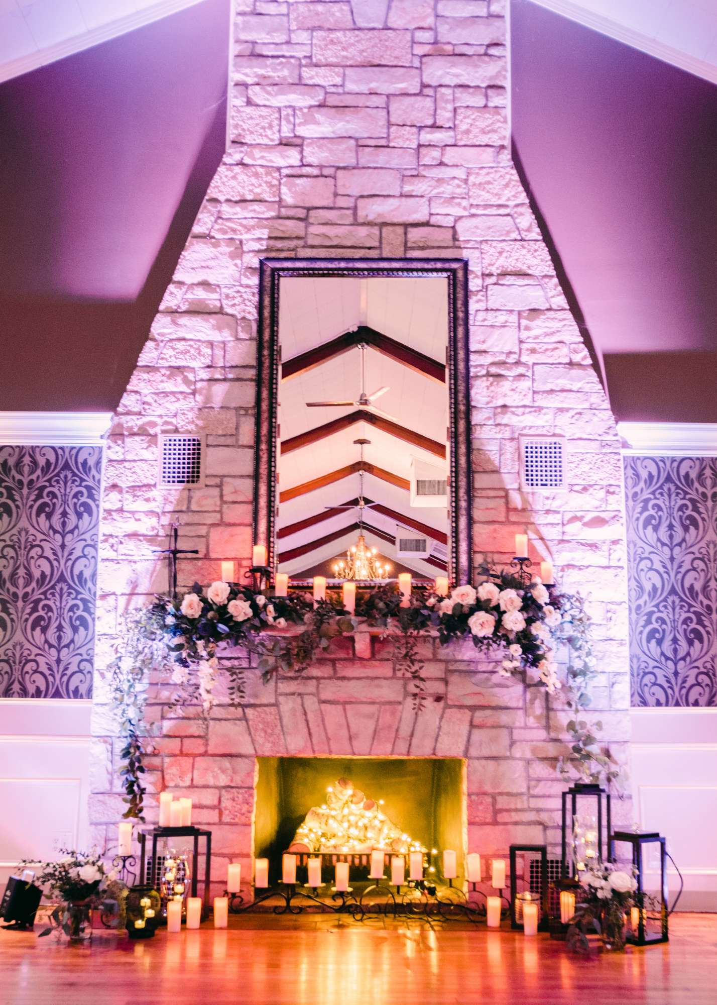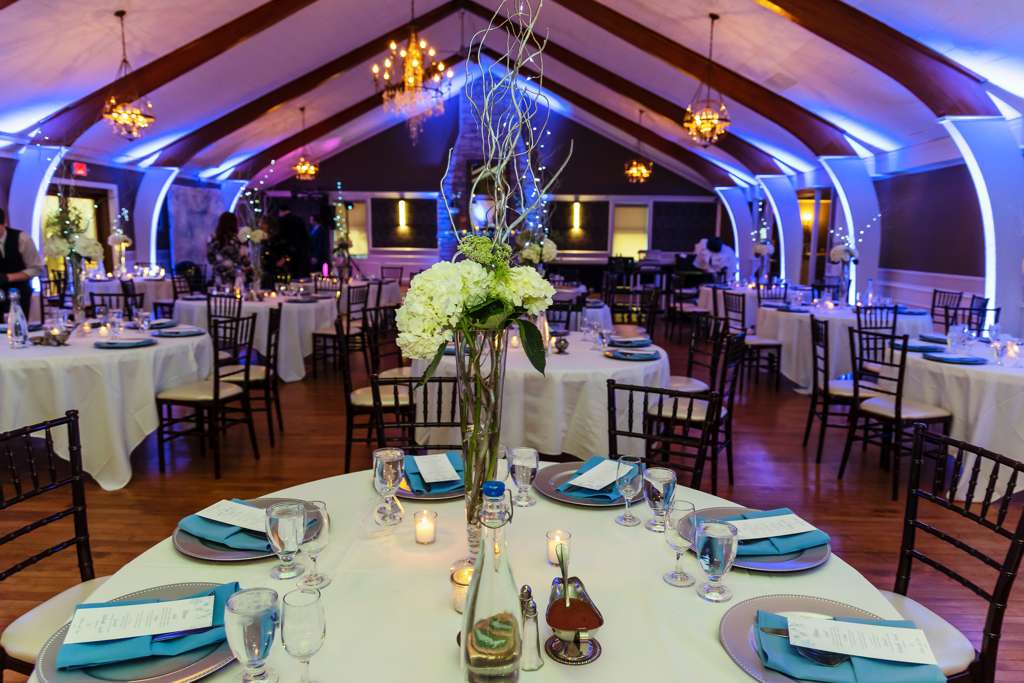 Up to 200 guests can join couples at this elegant wedding venue. The main room in the venue and features wooden beams running along high white ceilings. The venue’s European feel takes couples and guests away for the wedding celebration. A stone fireplace sits at the far end of the hall. The Tuscan Hall Venue’s separate Wine Cellar is a smaller, cozy room. This area features whitewashed stone walls and exposed beam, a bridal suite for dressing, updated bar with up lighting.