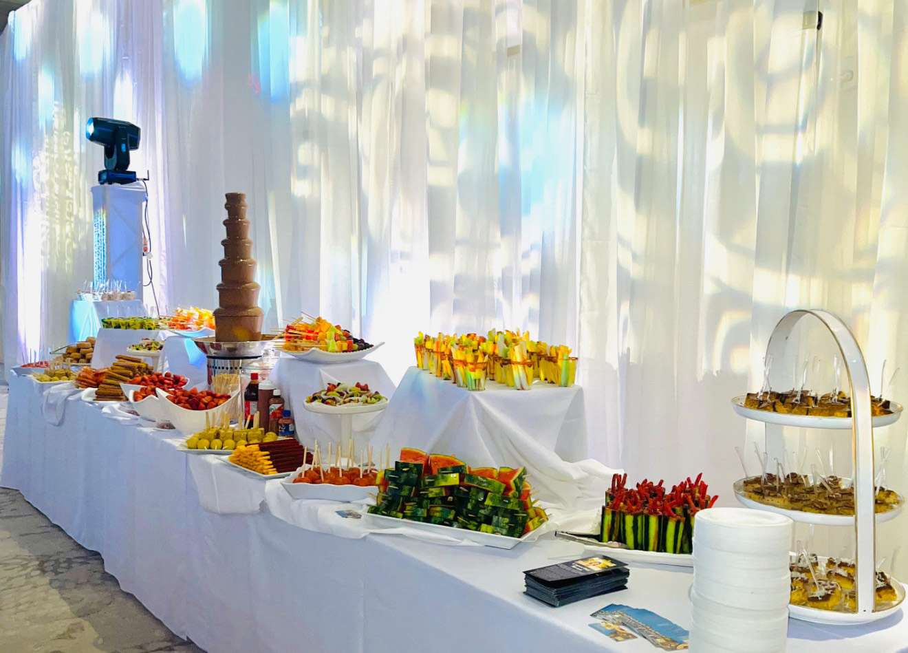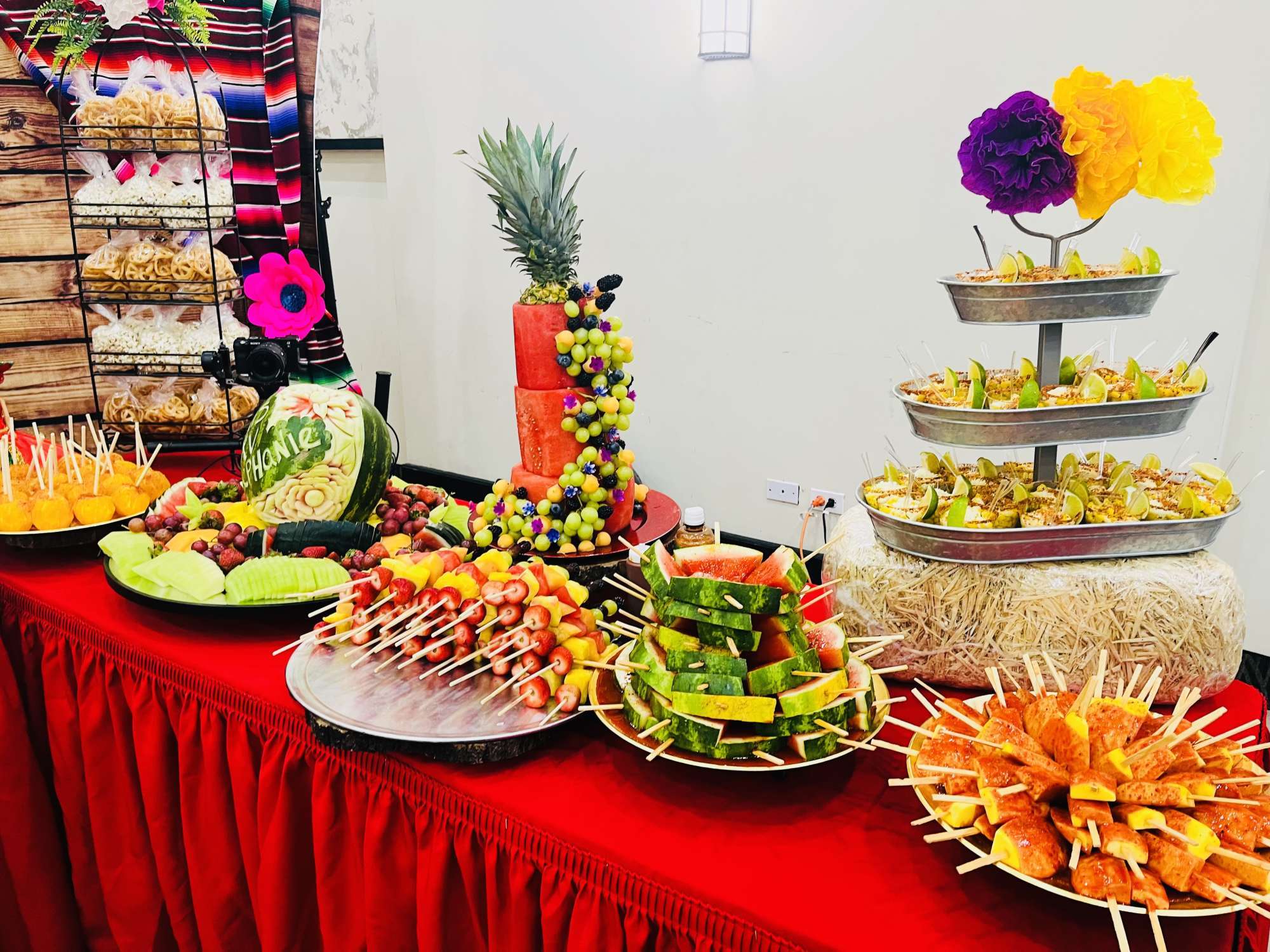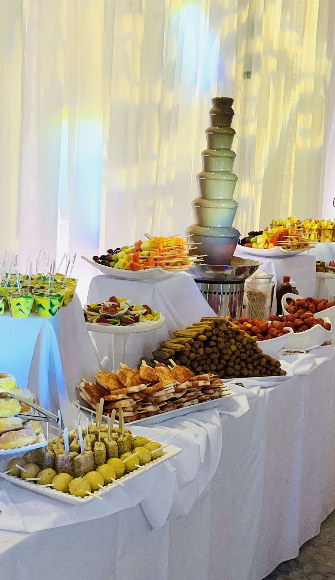 From elegant appetizer tables to full buffet-style catering, festive food truck service, colorful snack bars, and beautifully arranged dessert tables, we tailor our offerings to fit your vision. Every package includes two hours of food service, full setup and cleanup and charming food table decor that adds a personal and festive touch.