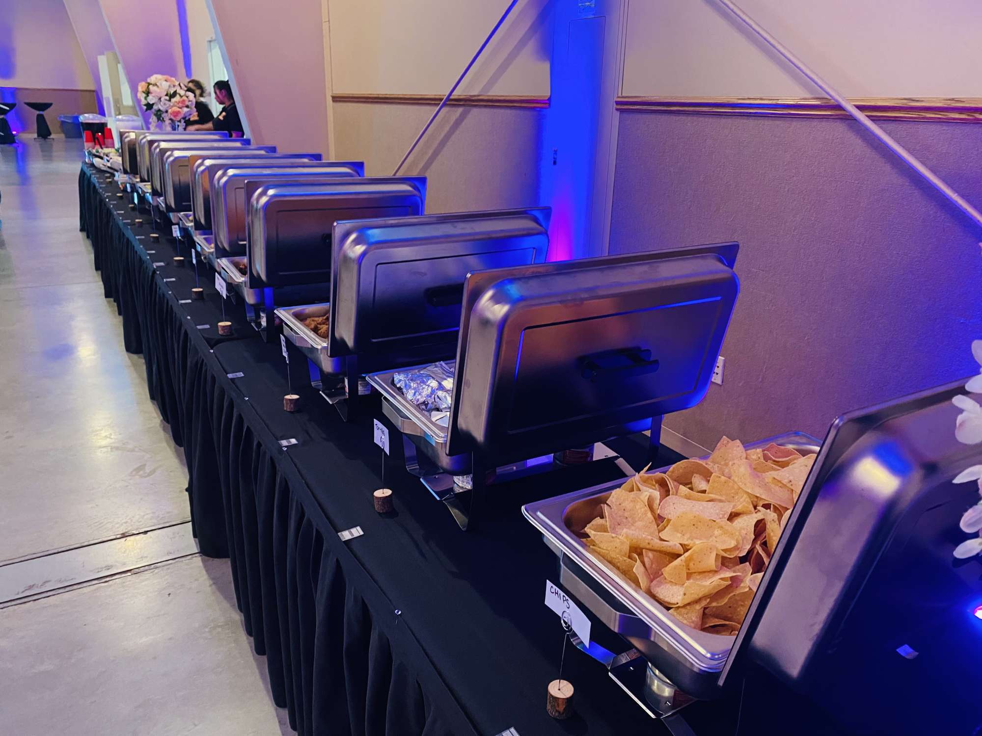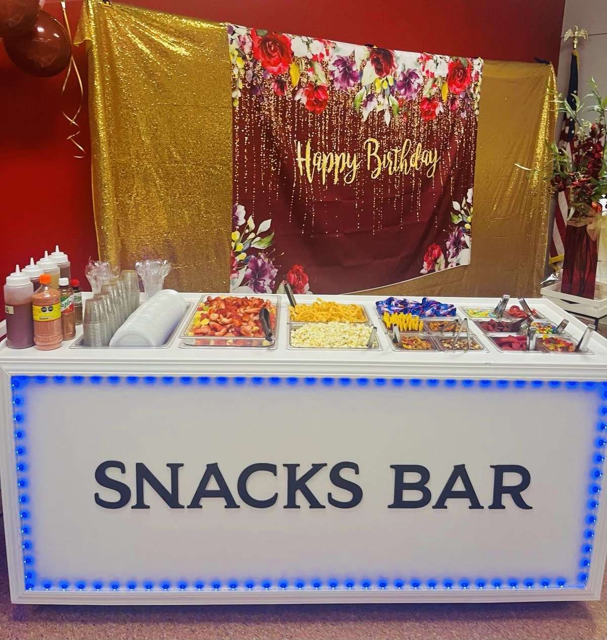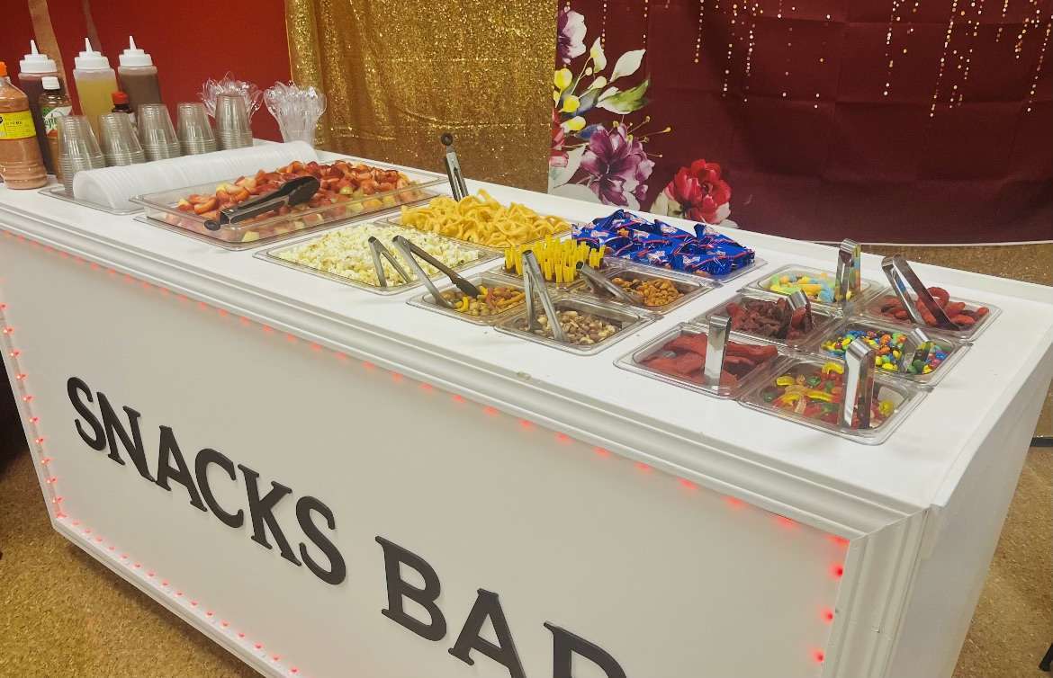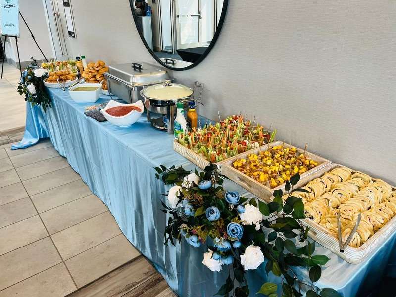 From elegant appetizer tables to full buffet-style catering, festive food truck service, colorful snack bars, and beautifully arranged dessert tables, we tailor our offerings to fit your vision. Every package includes two hours of food service, full setup and cleanup and charming food table decor that adds a personal and festive touch.