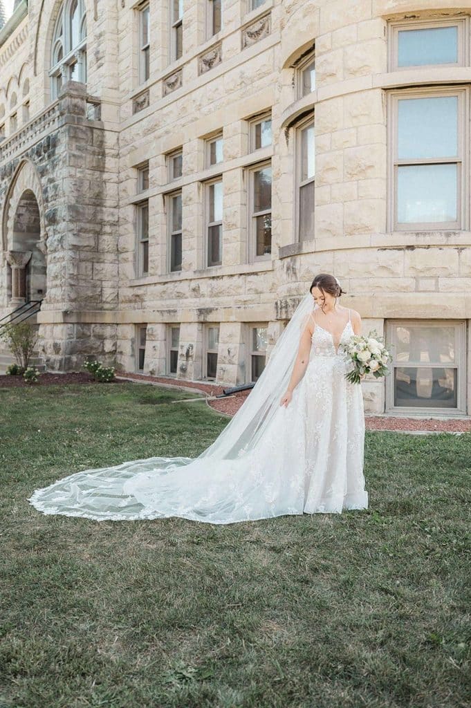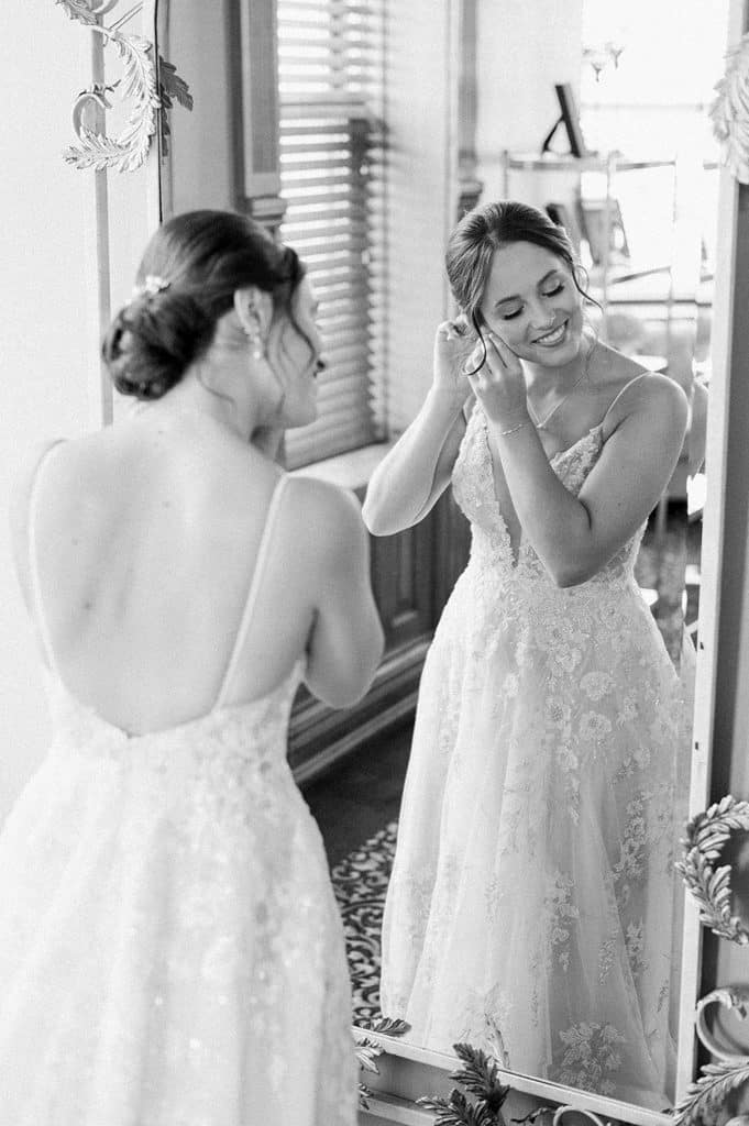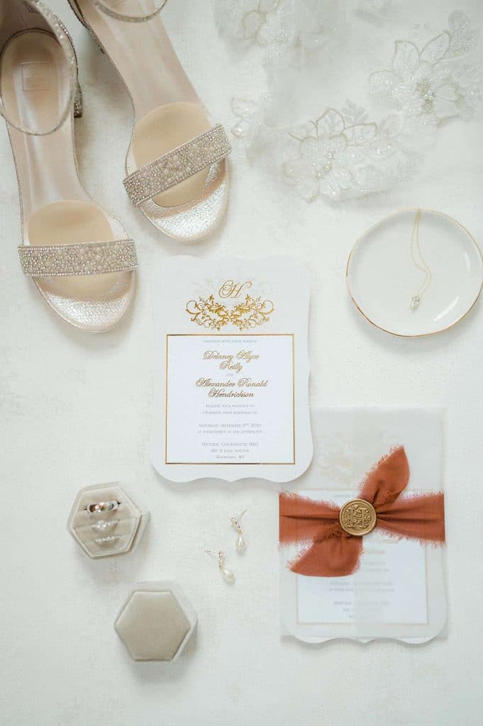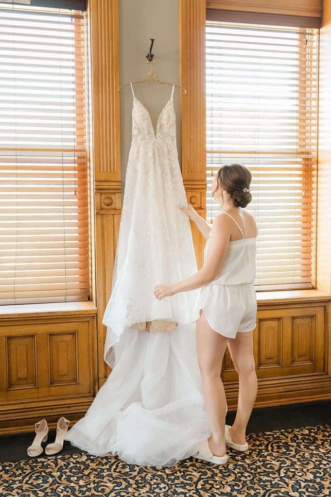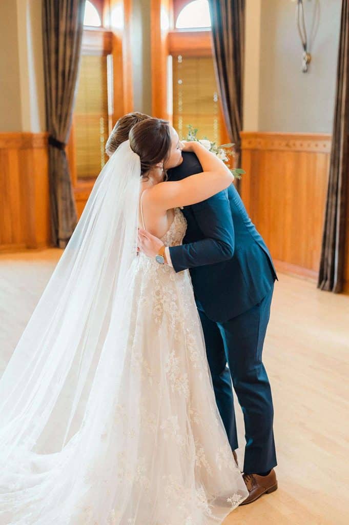 Delaney found her dream wedding dress, a gown designed by Calla Blanche, at Vera’s House of Bridals in Madison. After trying on upwards of 20 dresses, she knew it was “the one” when she couldn’t stop thinking about it, even after visiting another shop.