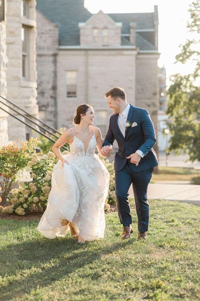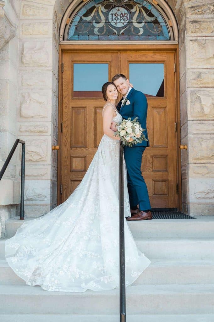 Delaney and Alex got married at Historic Courthouse 1893 in Waukesha on September 9, 2023. Their wedding was a classic, romantic celebration of love, with all of their family and closest friends present. Delaney’s brother Brenton officiated the ceremony, and the couple wrote and recited their own vows to add an extra personal touch. The couple lit a traditional unity candle and invited their mothers to come up and light the two outer candles. The reception, which the couple describes as “a HUGE party,” continued at the same venue. “We just wanted everyone to let loose and dance with us!” No one left the dance floor all night, thanks to the DJ from Sound by Design. All of the married couples participated in an anniversary dance, including Alex’s grandparents, who had been married for 63 years.