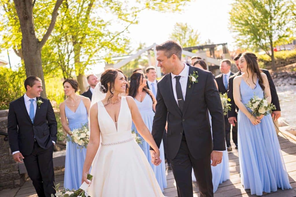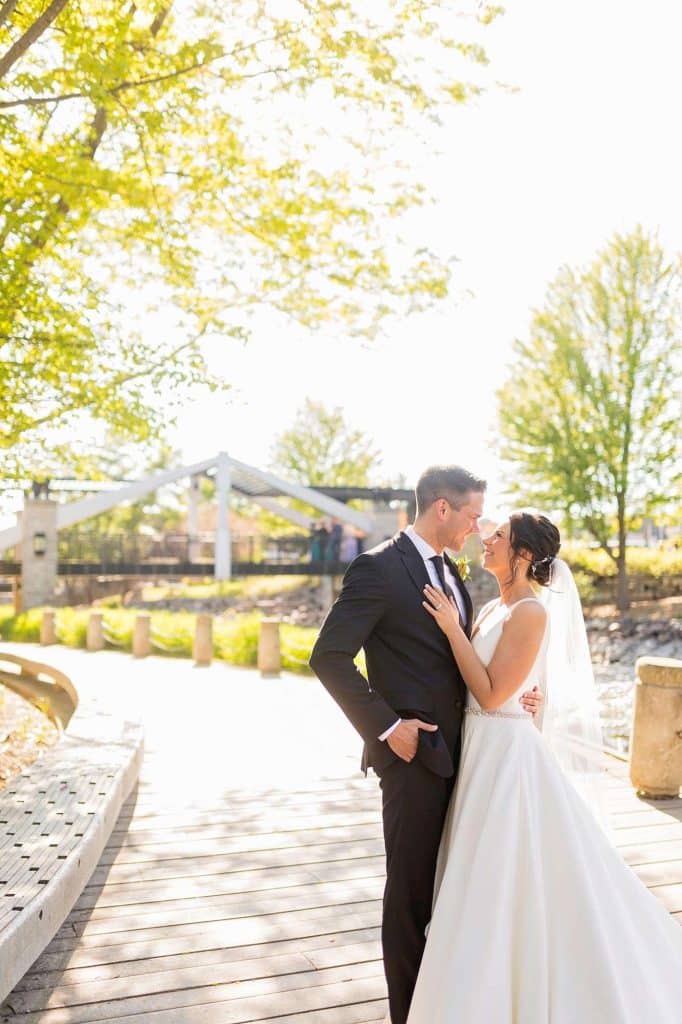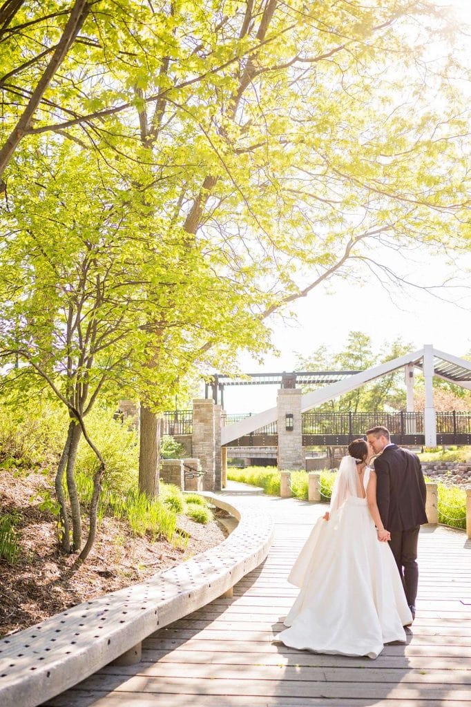 Kaylee and Derek hired Allysha Noelle Photography to capture their day. In addition to the church and reception venue, the couple and their party stopped by the fish hatchery and Downtown Waukesha near a beautiful bridge and gazebo for stunning outdoor pictures.