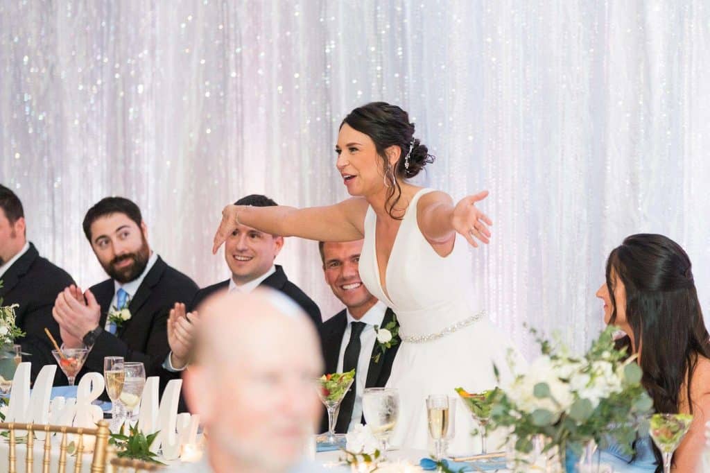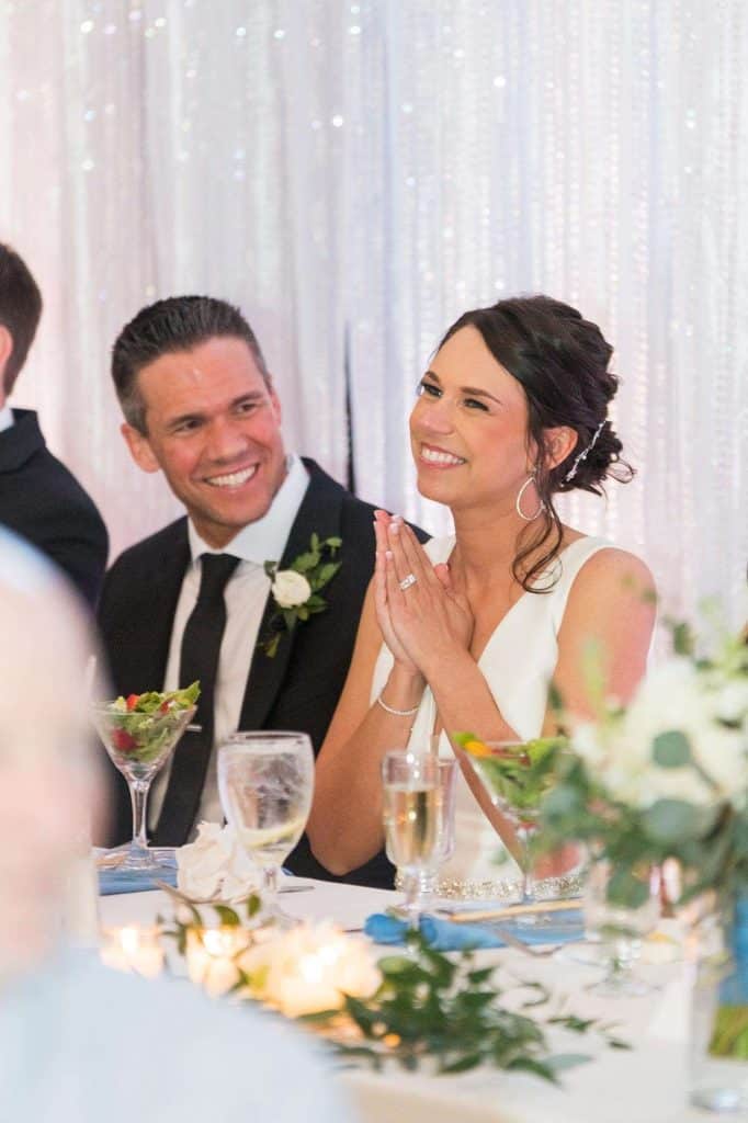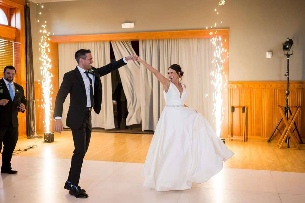 One of the newlyweds’ absolute favorite moments was their entrance at the grand march. As they walked into the room, they were surrounded by cold sparks, which created a wonderful spectacle. Their first dance song was “Yours” by Russell Dickerson. Kaylee and Derek wanted all of their family and friends to have an amazing time celebrating, so they invested in a light-up dance floor, a great DJ, and a photo booth.