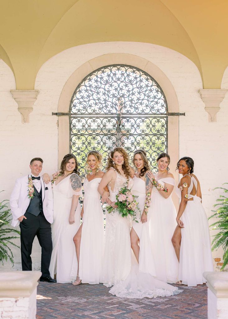 All these floral designs blended beautifully as you can see the bride with her bouquet and attendants at Villa Terrace in Milwaukee.