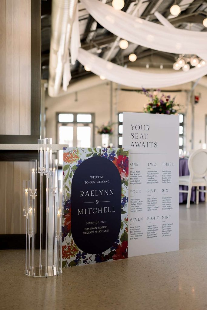 For the final look, Foxtown Station transformed into a lively celebration of color. Bursting with bright, joyful linens from Windy City Linen, the space radiated energy and personality. The colorful design showcased the versatility of the venue and the creativity of the vendor team. DD Cakes and Edible Impressions provided delectable desserts, and Shelby Lynn Designs ensured the invitations and signage were a perfect accent.