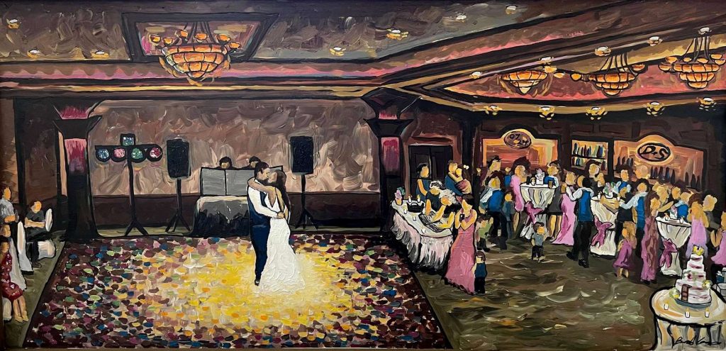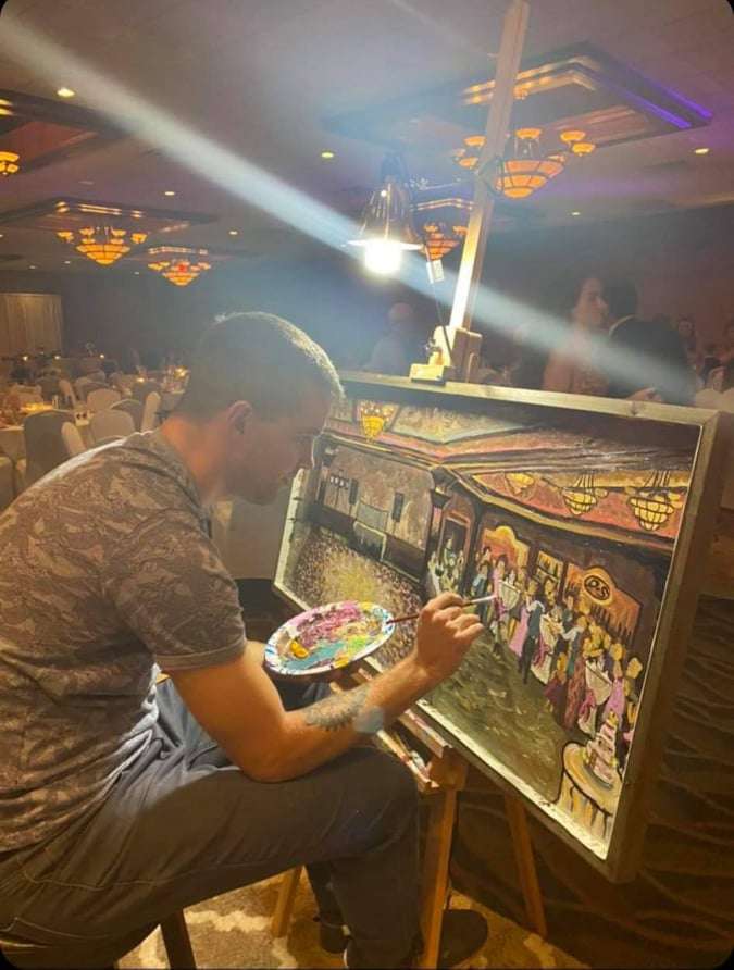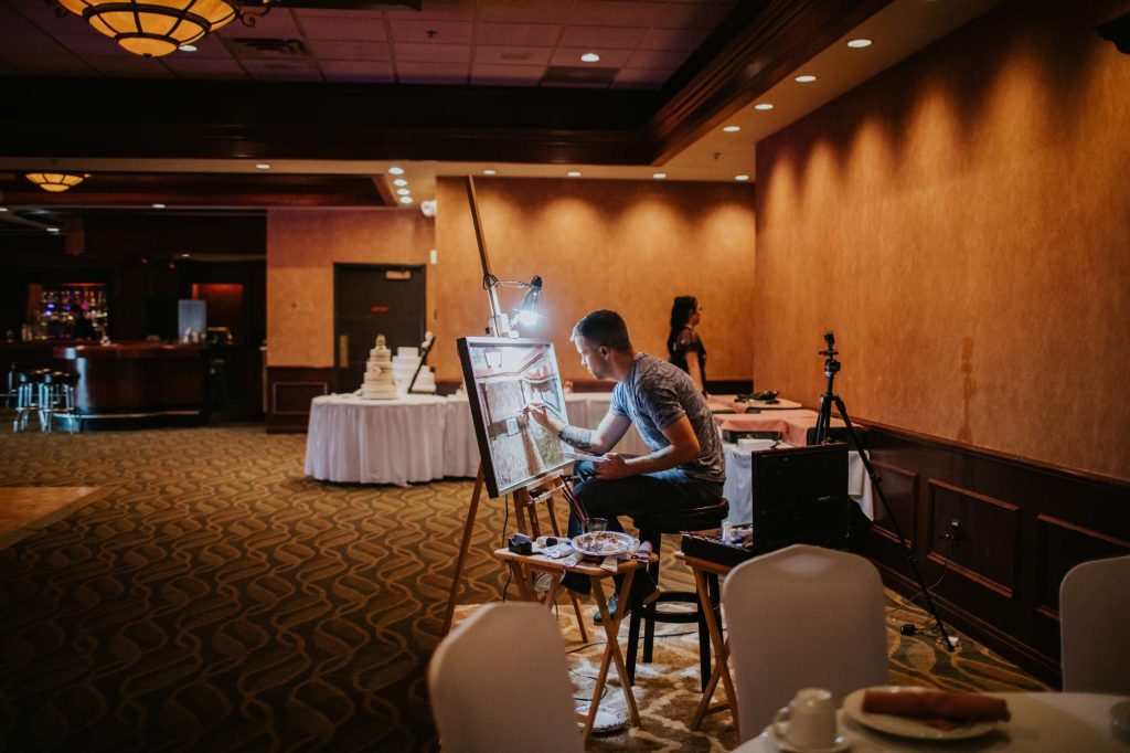 He begins painting a few hours before your reception.