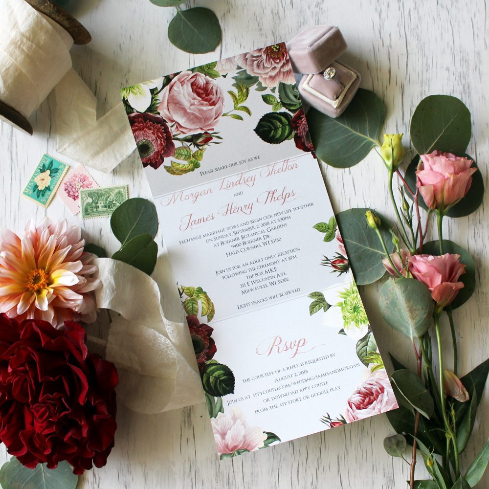 Whether it’s a rustic barn wedding or an elegant black tie affair, make sure the style of your invitations reflect your wedding theme.