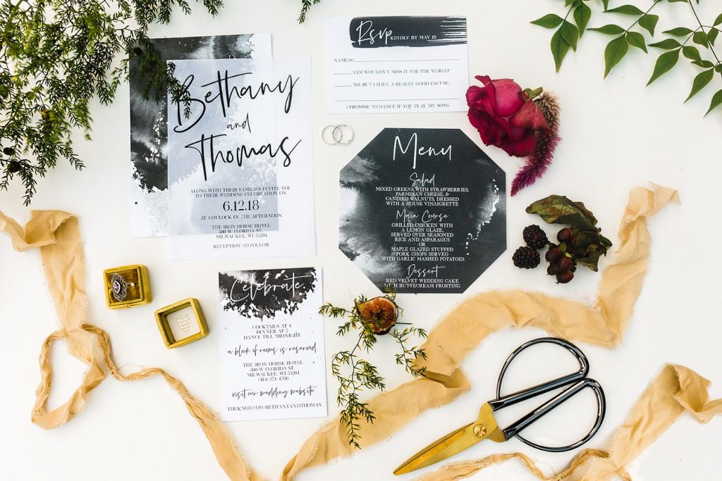 Save the Dates, Invitations, RSVP Cards, Enclosure Cards, Envelope Printing, Programs, Place Cards, Table Numbers, Menus and Thank You’s.