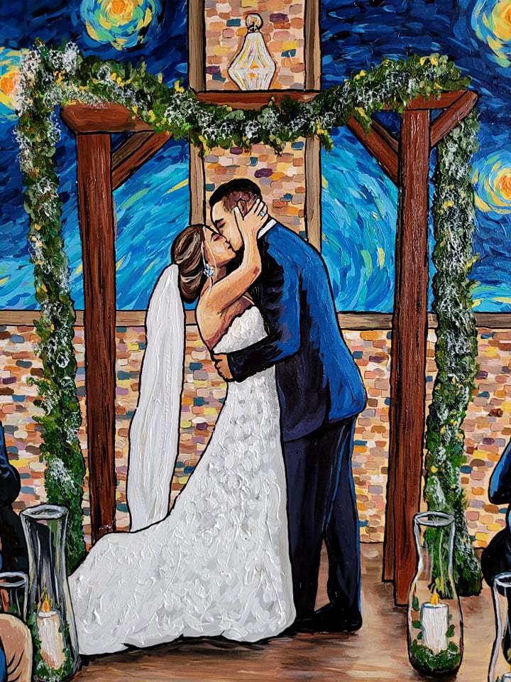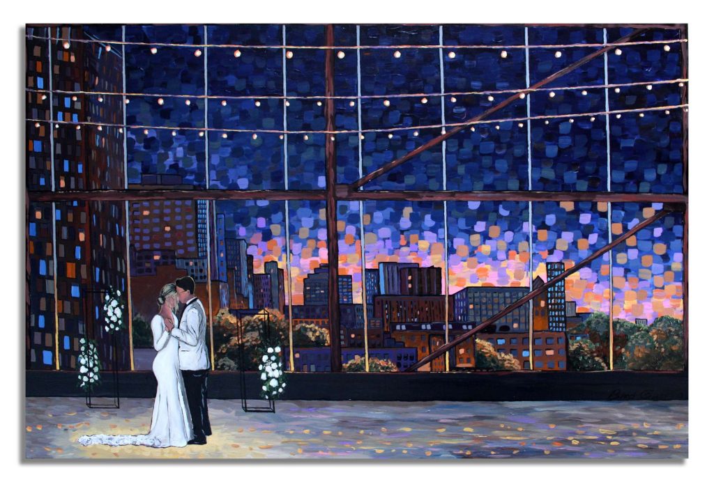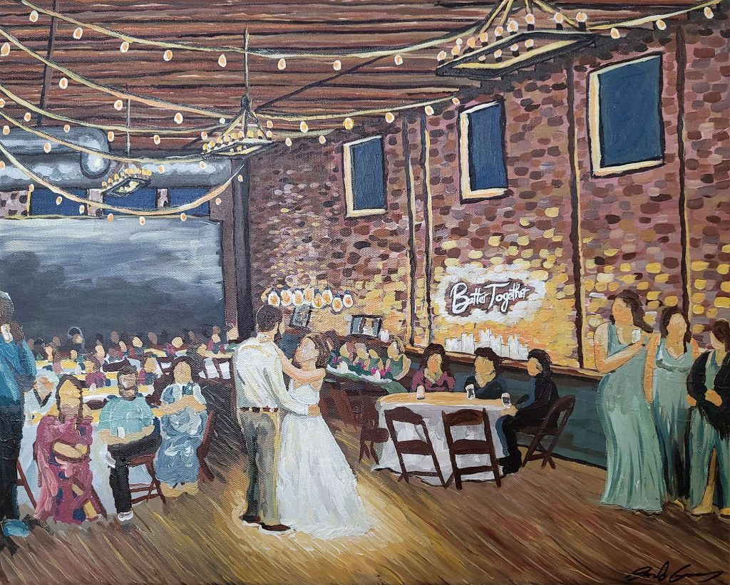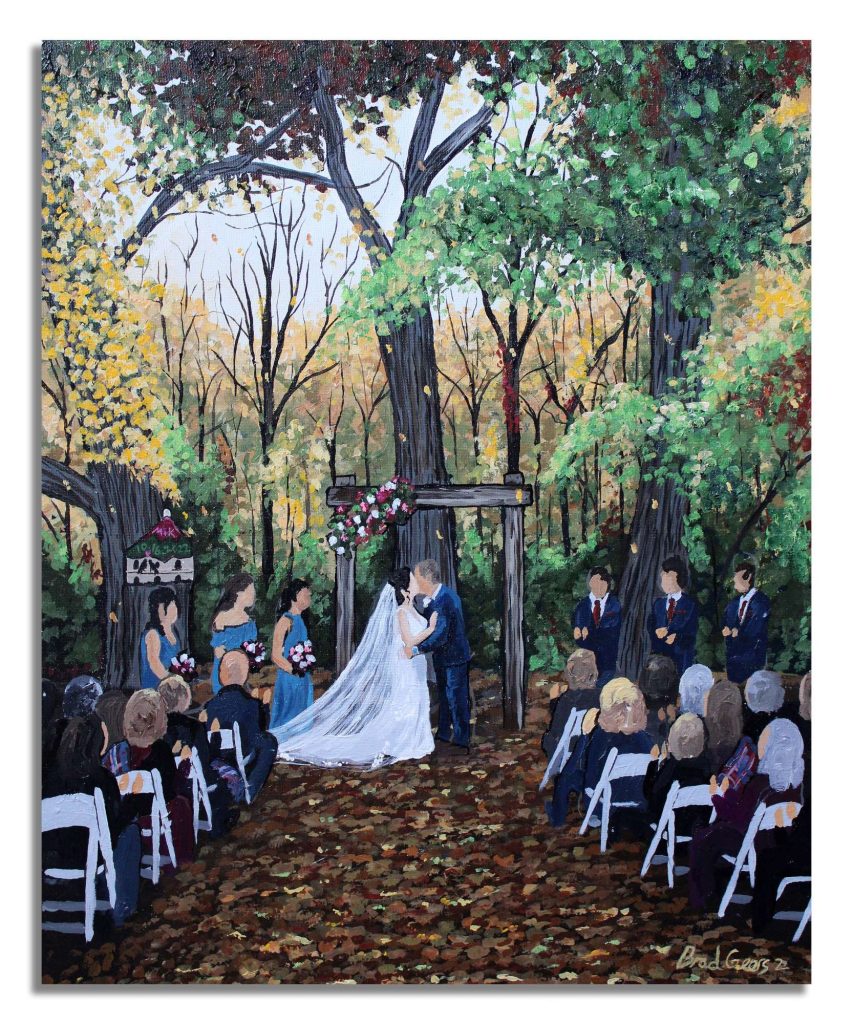 Brad Geers is a Milwaukee-based artist who specializes in events — painting special moments on canvas from them, to be exact. His talents have brought him to paint live scenes at various functions, including music festivals, concerts, family gatherings, and of course, weddings.