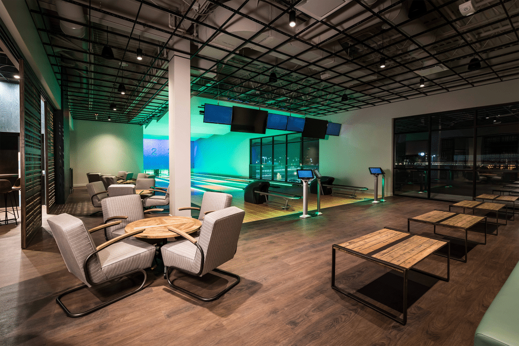 They also house 8 bowling lanes , a 4 lane VIP Bowling Suite, HyperBowling,