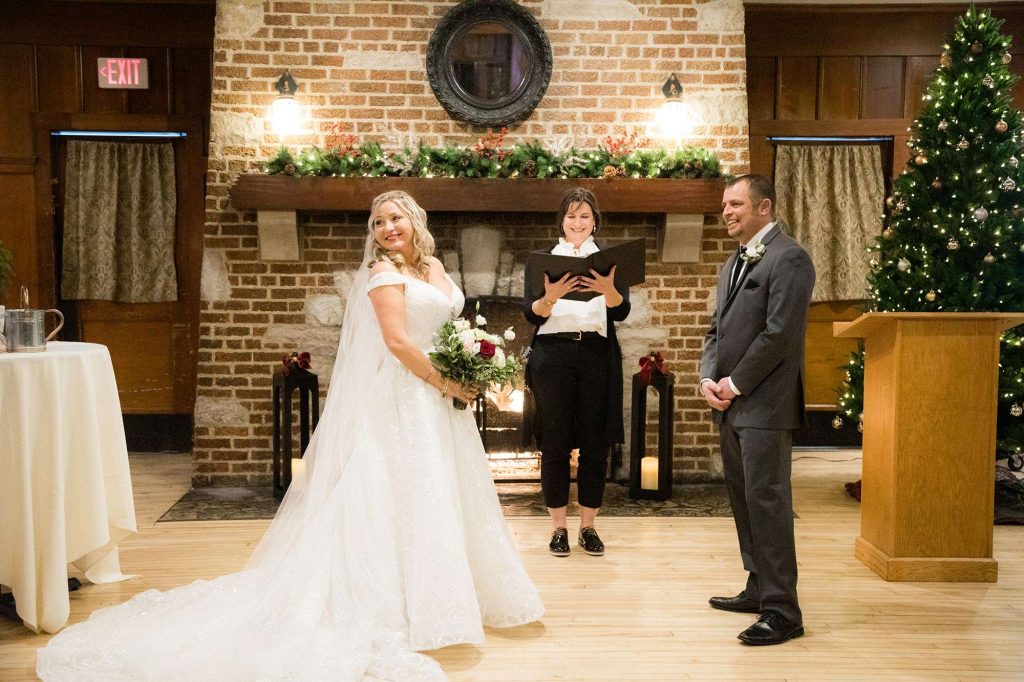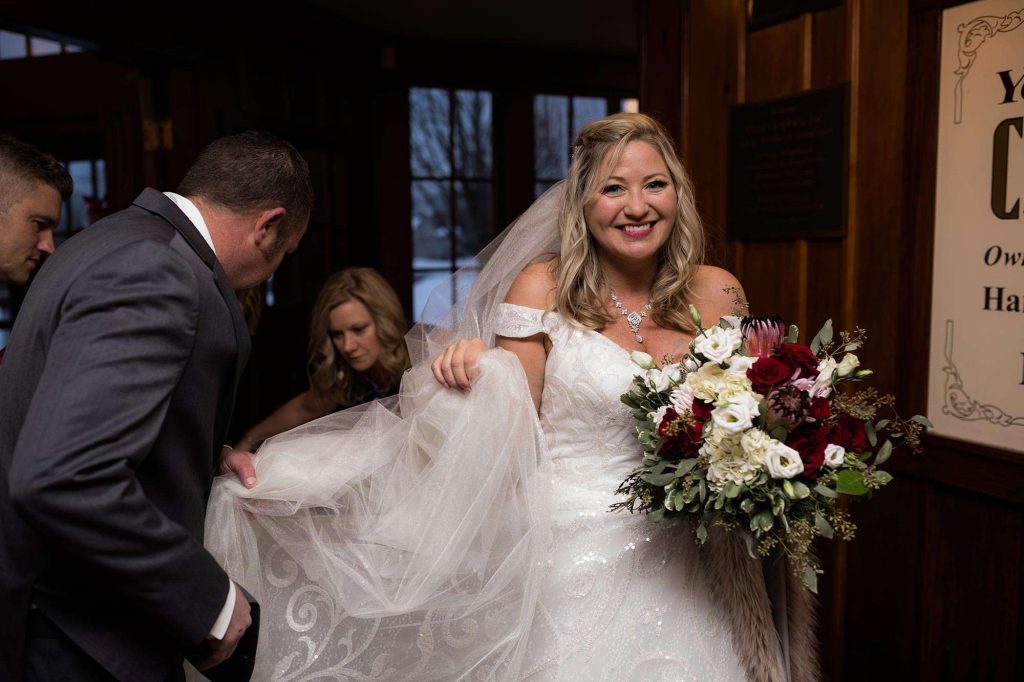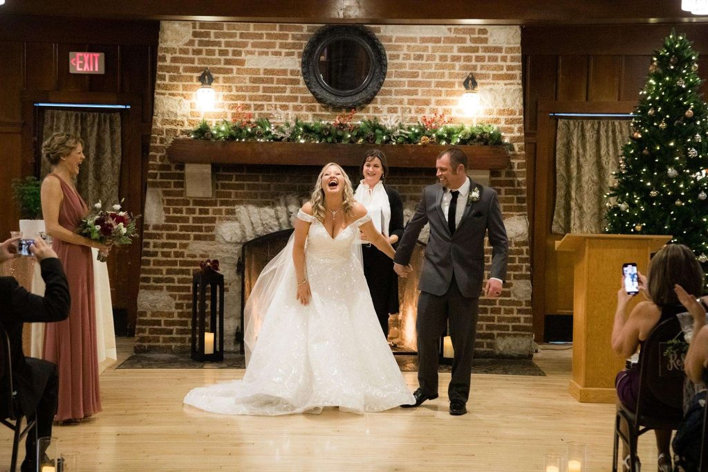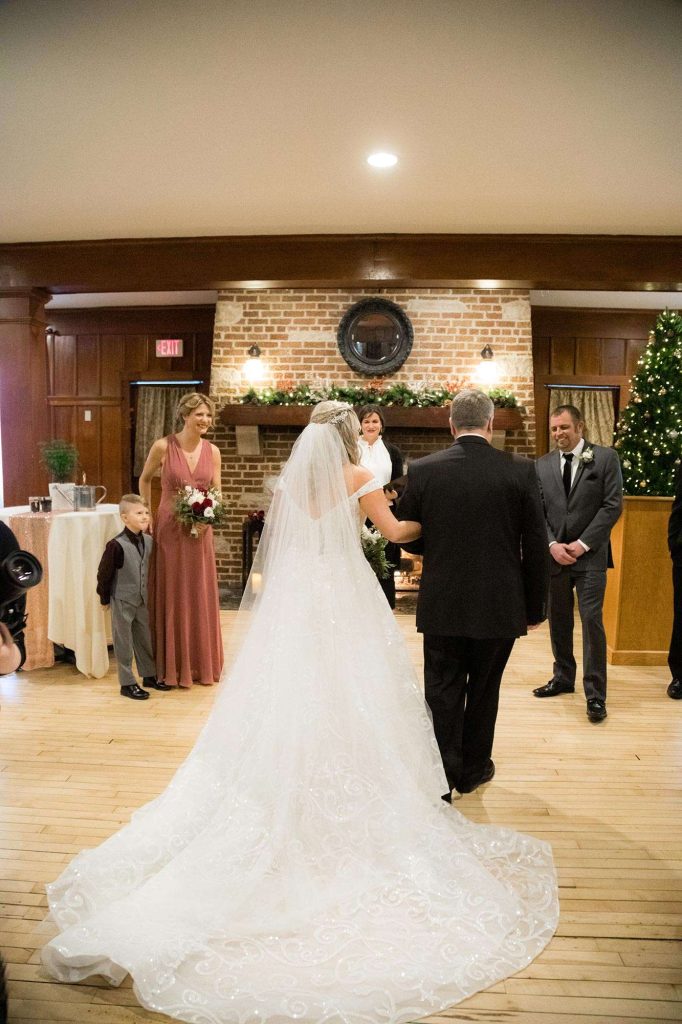 They were also drawn in by the history behind the Chandelier Ballroom. “The cozy charm of the fireplace room and the elegance of the grand ballroom helped make our decision easy! Who wouldn’t want to have a winter wedding in front of a fireplace? Having catering on site, that was definitely a plus! The food was just as amazing day-of as it was for our menu tastings.”