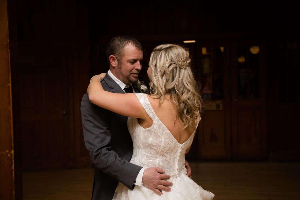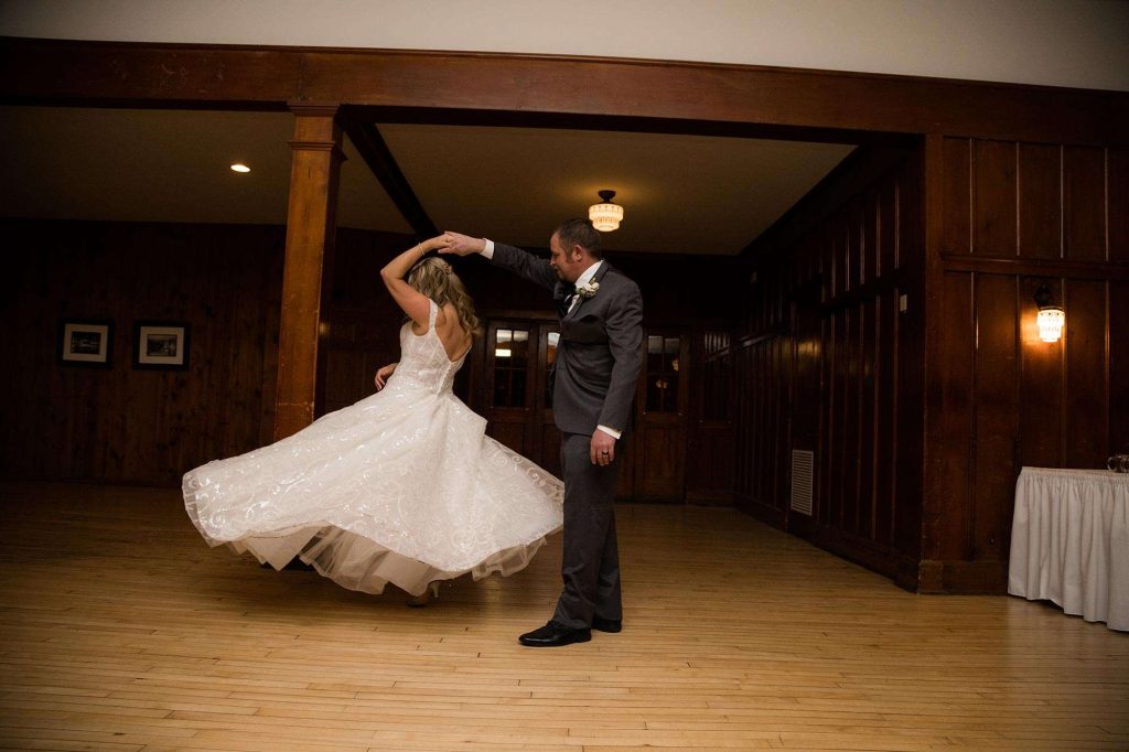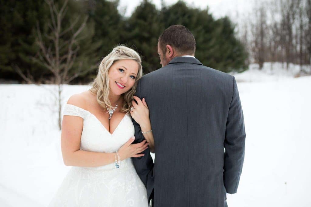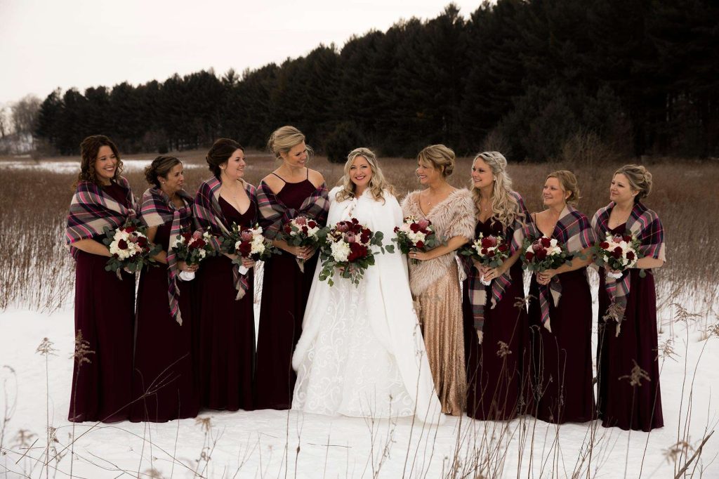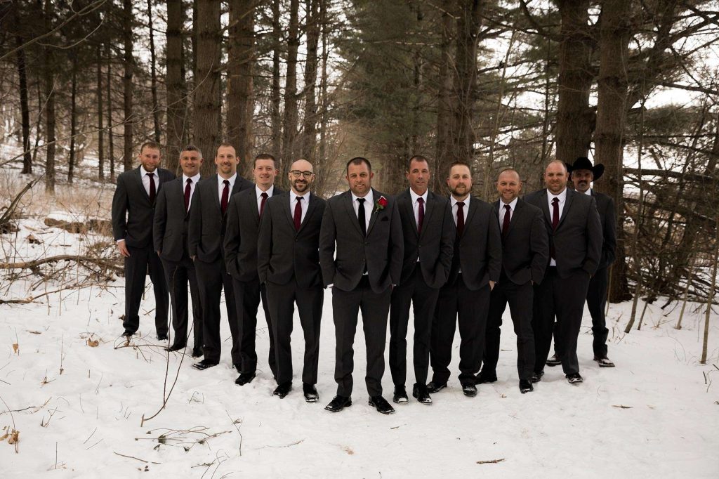 Chris and Karrie took photos on the Ice Age Trail, bridal party portraits at Loew Lake, and family photos in the Chandelier Ballroom itself. Marie, the owner of Wild Elegance, was there to capture the day. “She stuck by Chris and I through the entire planning process! From engagement pictures, planning meetings, emails/texts, and day-of photography, we knew we could count on Marie to make it happen. She was so in tune with capturing special moments for us! Since we had a winter wedding, it wasn’t the warmest to linger outside, but Marie was spot on with her direction and photography skills. I really feel we became friends over the planning process. It wasn’t just a job to her—she truly cares, and her work shows it! Our wedding photos turned out perfect. I would recommend her hands down!”