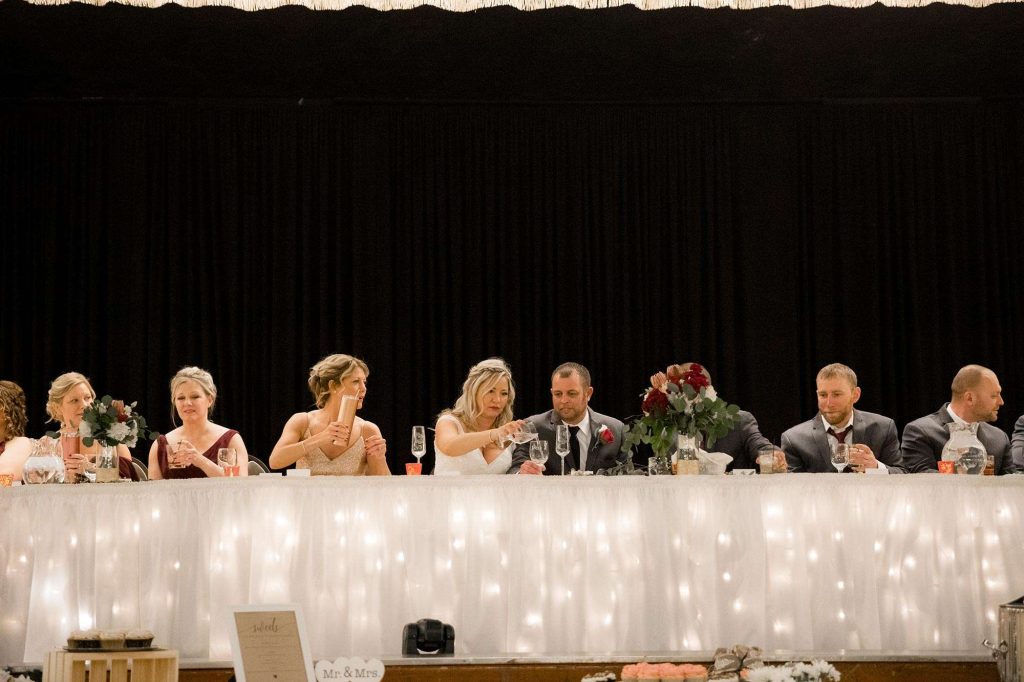 “Pinterest sure could be the death of a bride!” Karrie says. She and her friends and family tackled a lot of DIY projects to bring the wedding day together, like crafting the invitations—twice. “It was a lot of work, but it was fun to hang out together! We had lots of laughter and good bonding time.” For decor, Karrie ordered wholesale greens for the centerpieces and arranged everything with the help of friends and family. She made the table numbers, spray painting each number rose gold. “We went through five or six cans of glitter paint. It was the most challenging task, believe it or not!” Karrie is so grateful to everyone who pitched in. “They were all such great and positive helpers!”