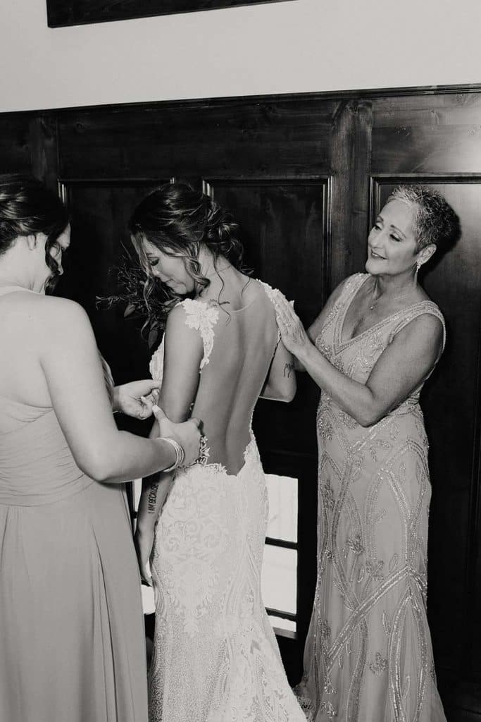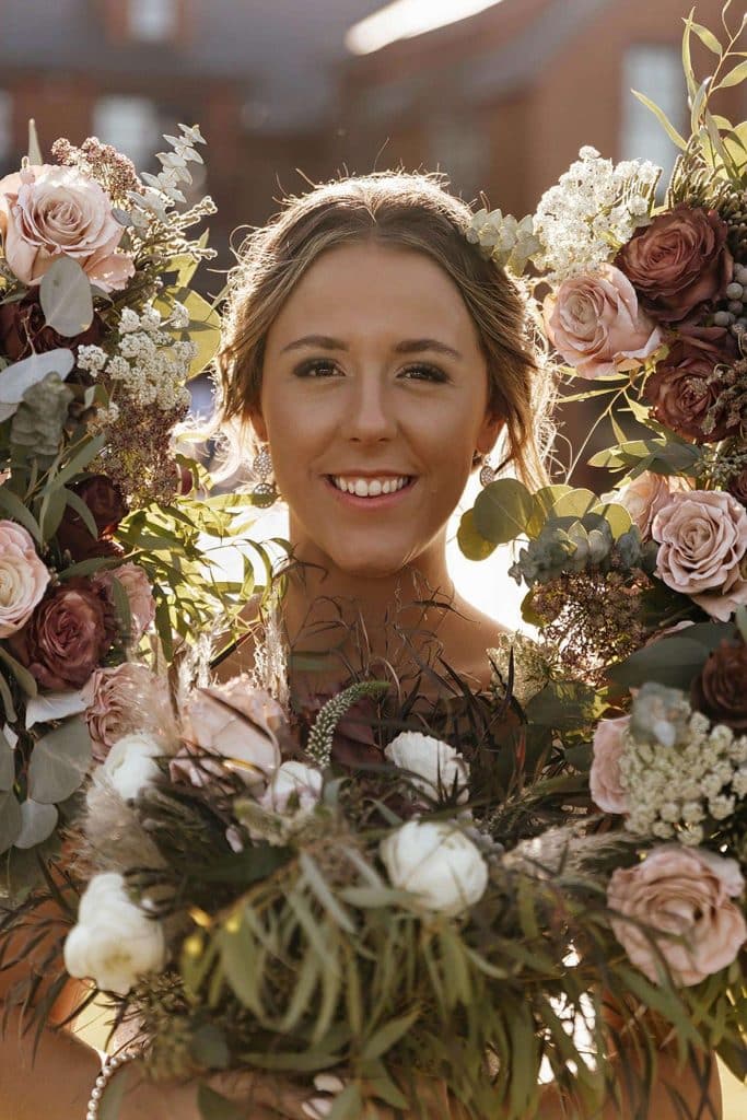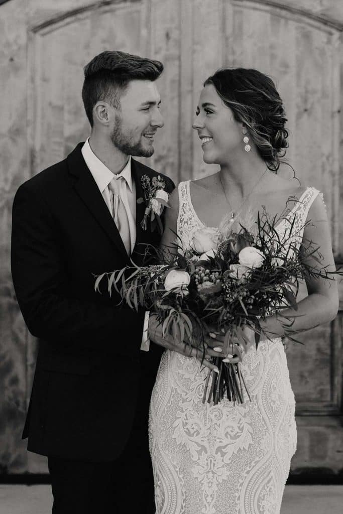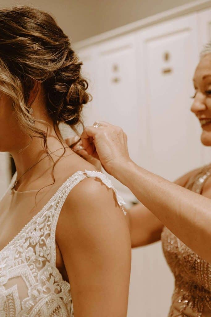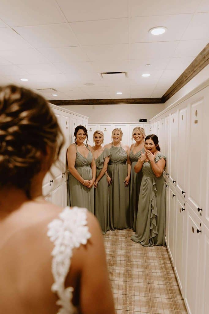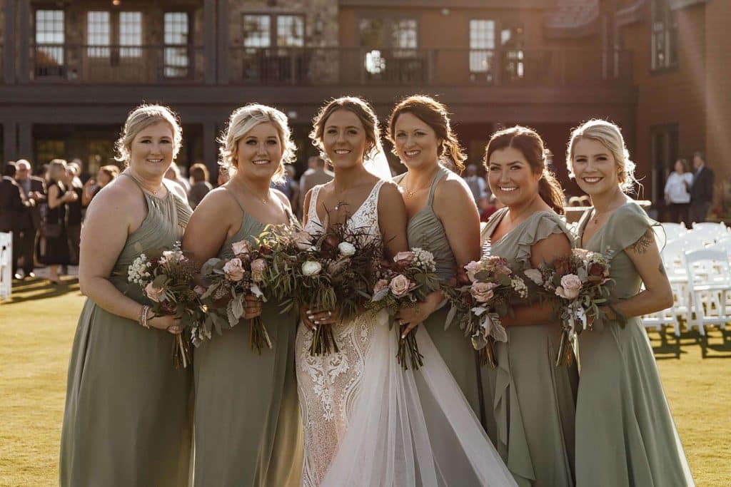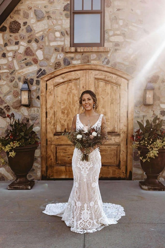 Annie found her dream wedding dress, a gown designed by Naama Nevipur, at Haute Bridal in Beloit. It was the second dress she tried on and instantly knew it was the one. It fit the vibe of the wedding perfectly. Annie’s bridesmaids purchased their dresses from Tulle Bridal Boutique in Clinton, Wisconsin.