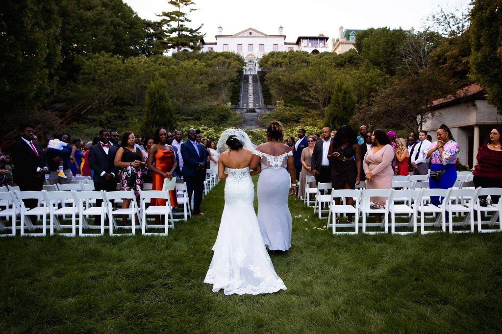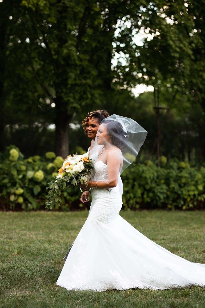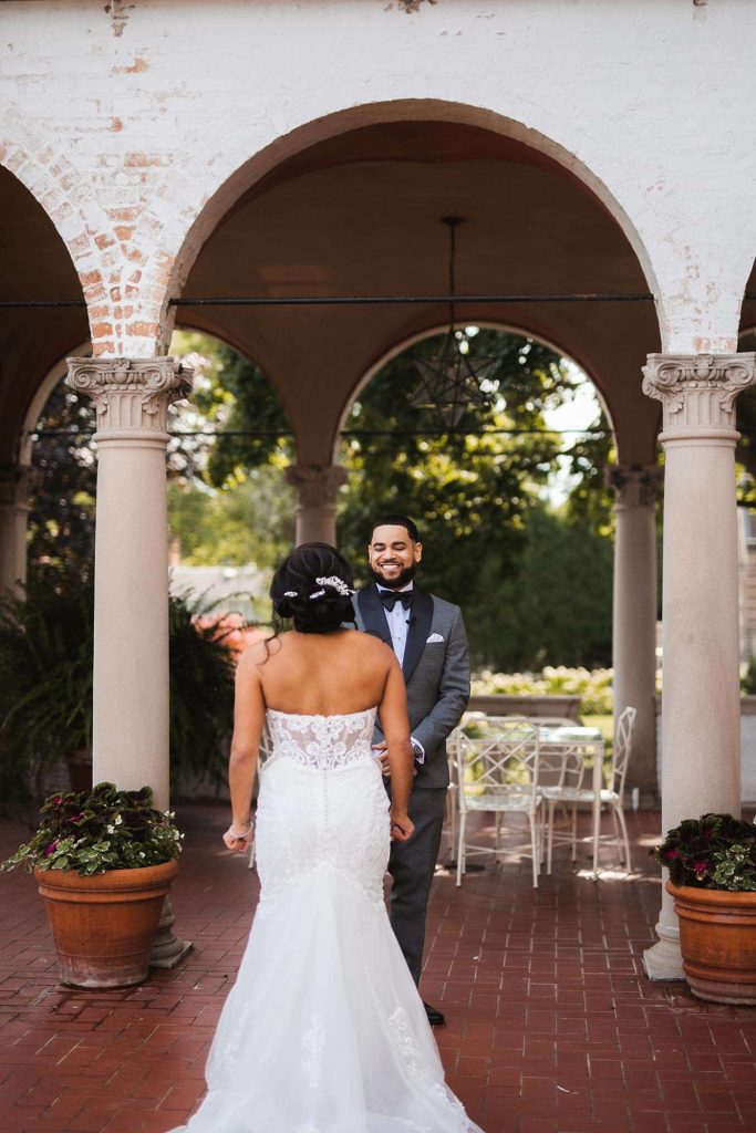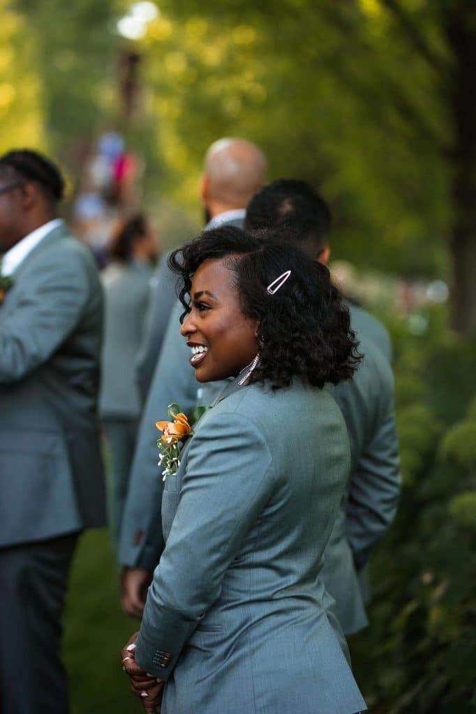 The wedding ceremony took place at the Villa Terrace Decorative Arts Museum with its stunning gardens and view of Lake Michigan. Yolanda’s favorite part: “A close friend got her officiant license just to do this for us. Our village showed up for us left and right, and our wedding was a visual representation of this.” Photos by Chelsea Matson show that there wasn’t a dry eye in the place.