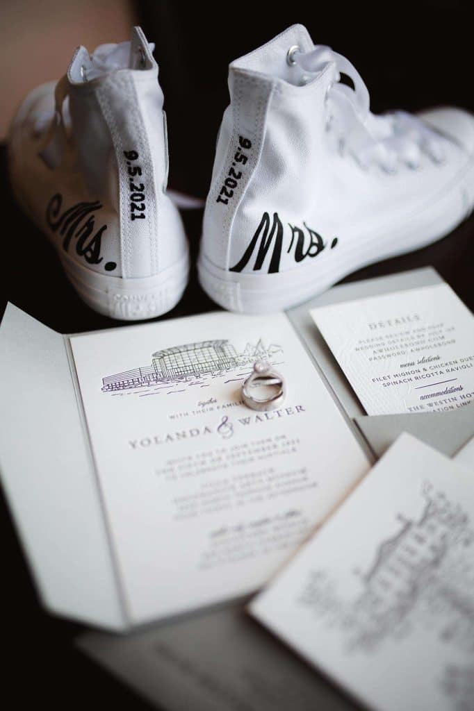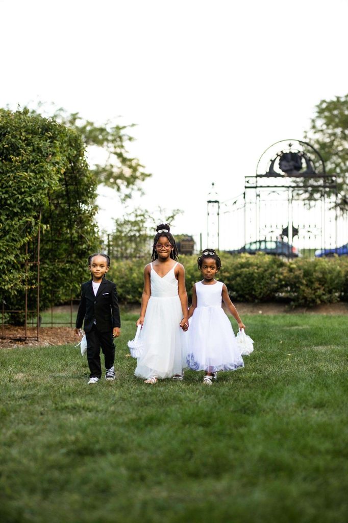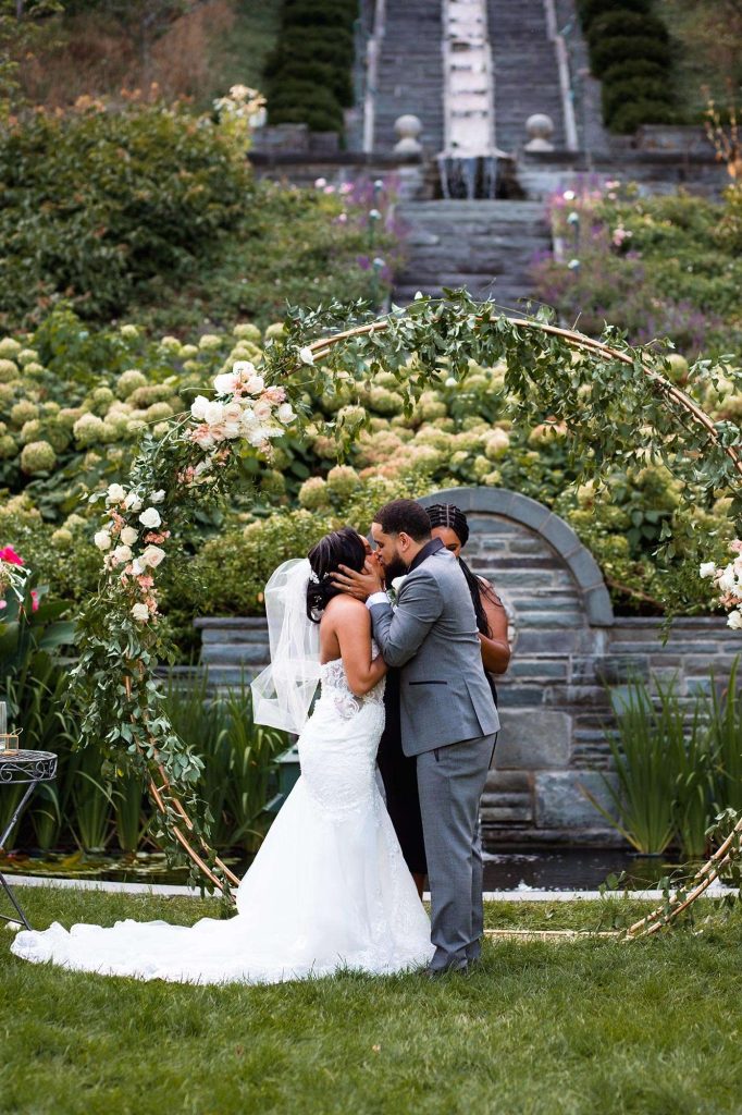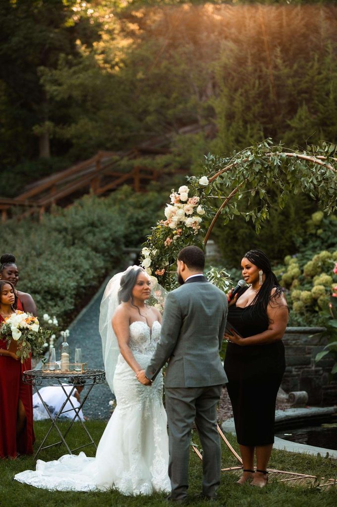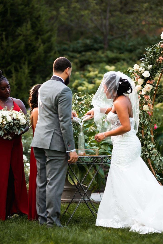 The wedding ceremony took place at the Villa Terrace Decorative Arts Museum with its stunning gardens and view of Lake Michigan. Yolanda’s favorite part: “A close friend got her officiant license just to do this for us. Our village showed up for us left and right, and our wedding was a visual representation of this.” Photos by Chelsea Matson show that there wasn’t a dry eye in the place.