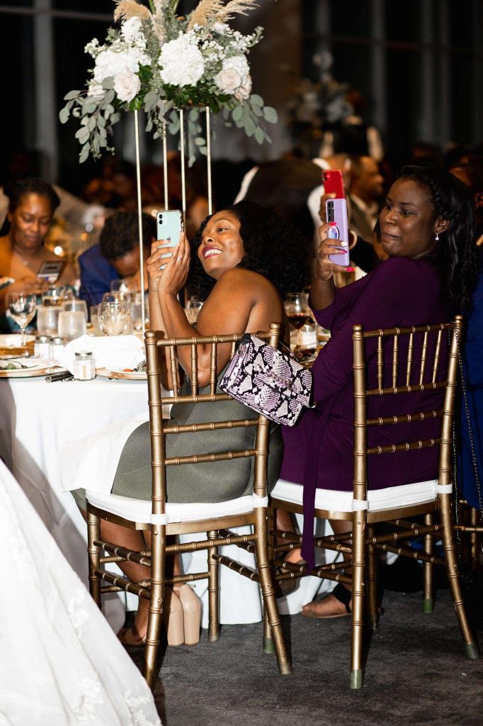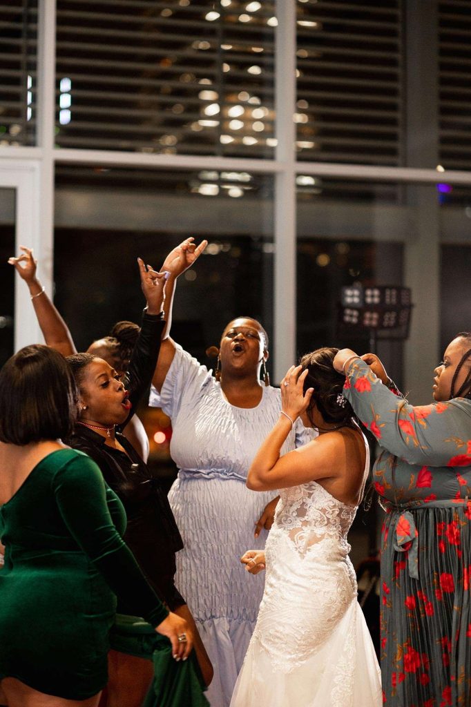 Again, the wedding weekend was planned to perfection. Here’s how: “After the rehearsal dinner, we had a small welcome reception for friends who were traveling from afar,” Yolanda explains. “From there, I had a slumber party with my cousins and sister who were in my bridal party. On the day of the wedding, we woke up, ate breakfast, and we were off to the races. Hair. Makeup. Dance. Mimosas. Dance again. Makeup touches. Get dressed. Photos. See Dad. See husband for the first time all day! Photos. Mingle. Wedding. Photos. Mimosas. Dance. Photos. You get the picture!”